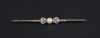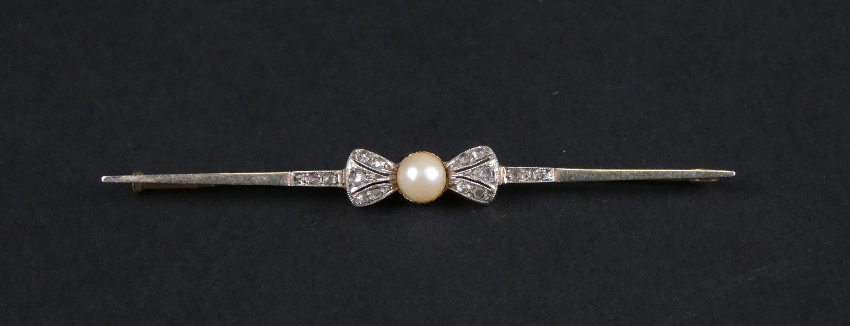 Bijou : Broche barrette - Noeud - en or jaune 18K sertie d'éclats de diamants et d'une perle de culture