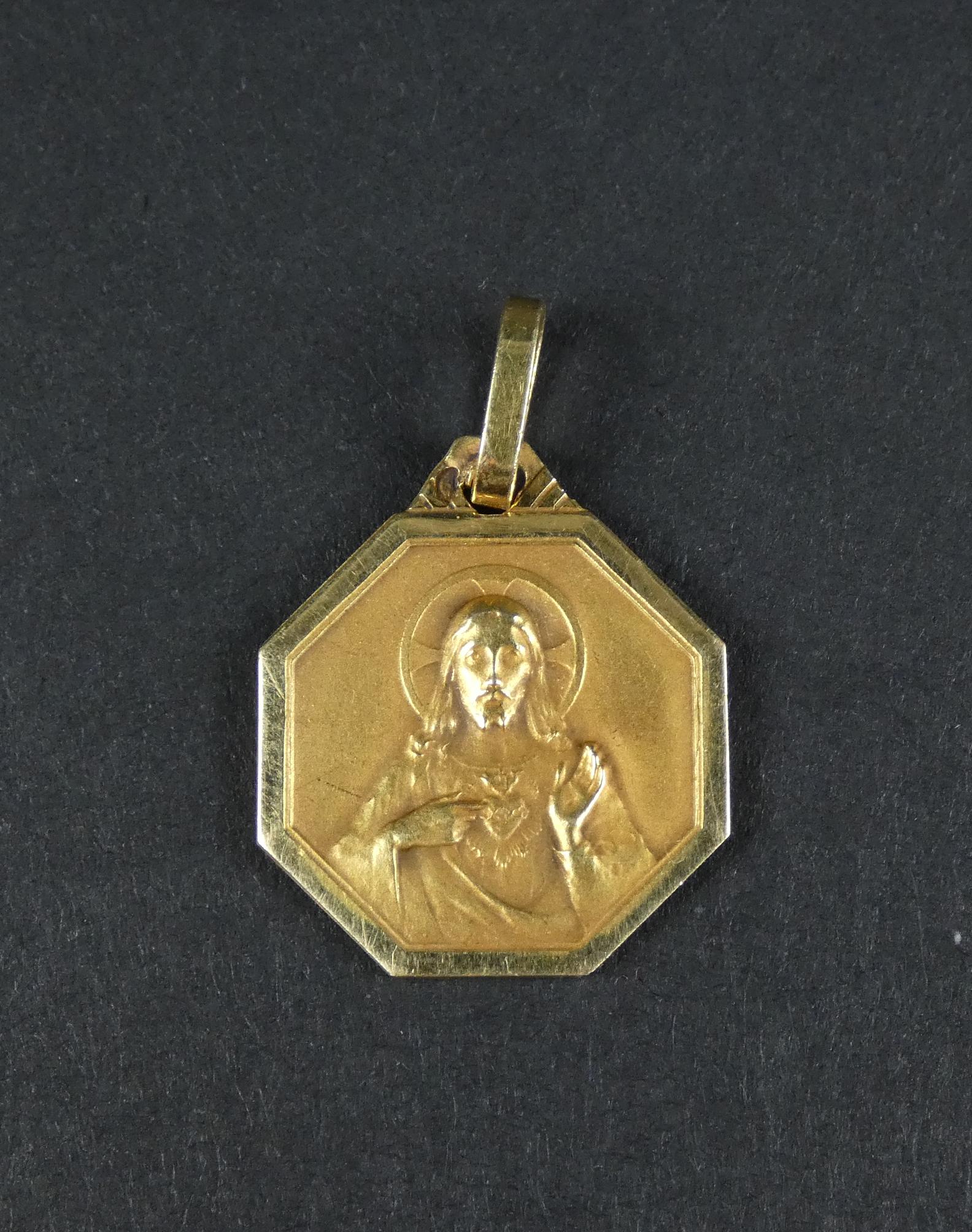 Bijou: Pendentif/médaille double face -Christ et Vierge à l'enfant- en or jaune 18K P: 2,7g