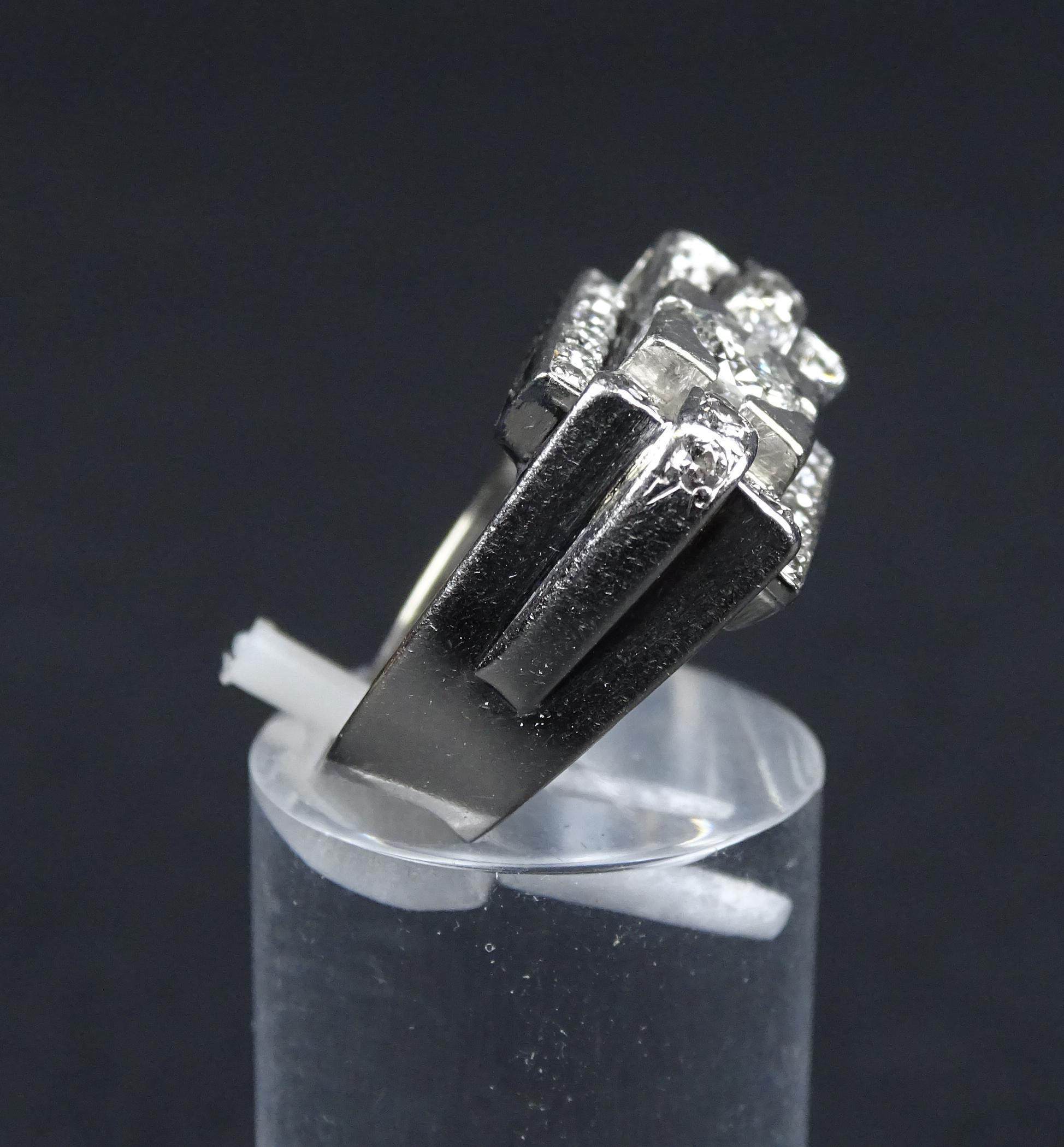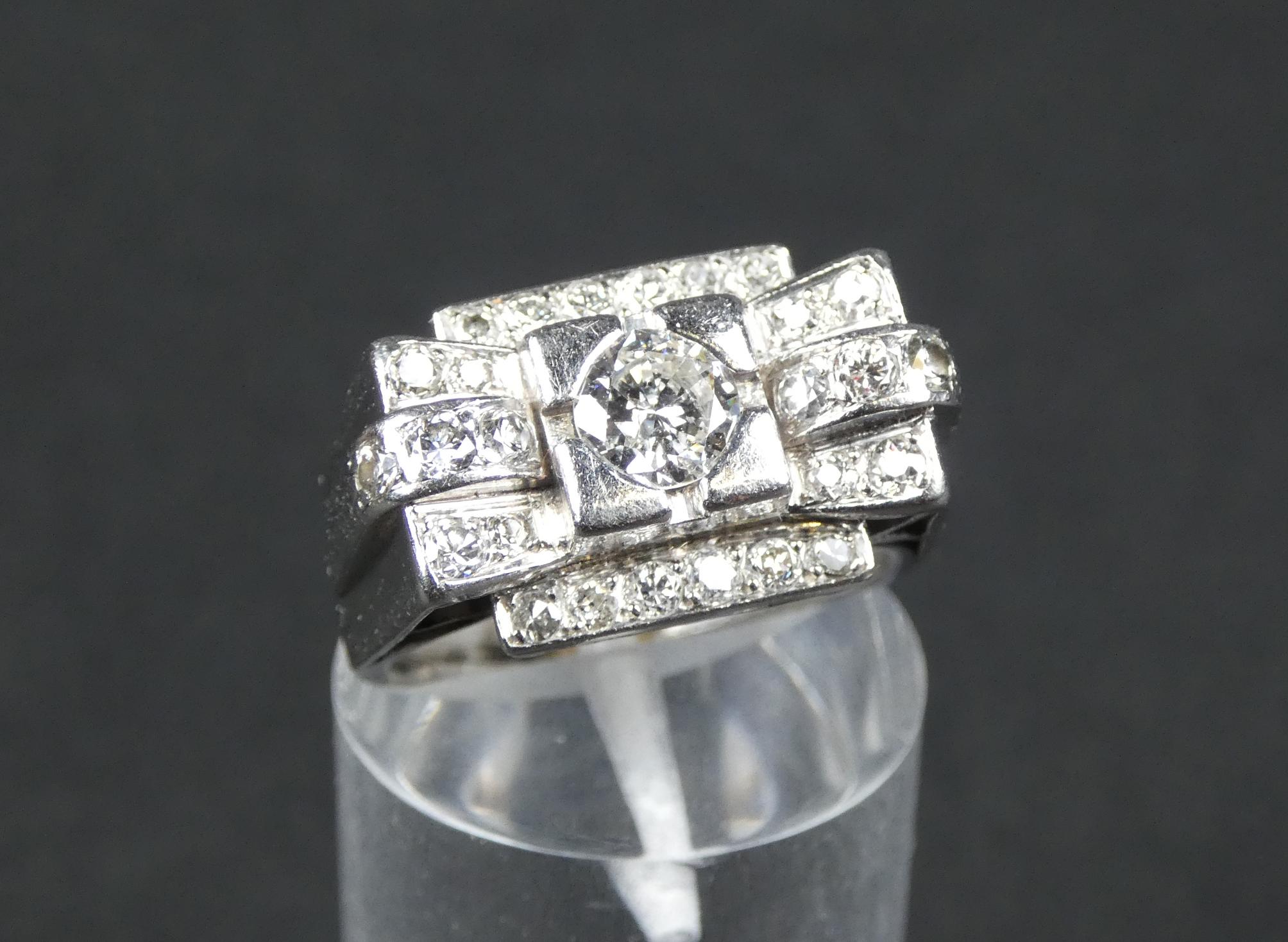 Bijou: Bague ART-DECO en platine sertie de 27 diamants dont 1 central d'env. 0,50cts P: 8,4g TDD: 48-49