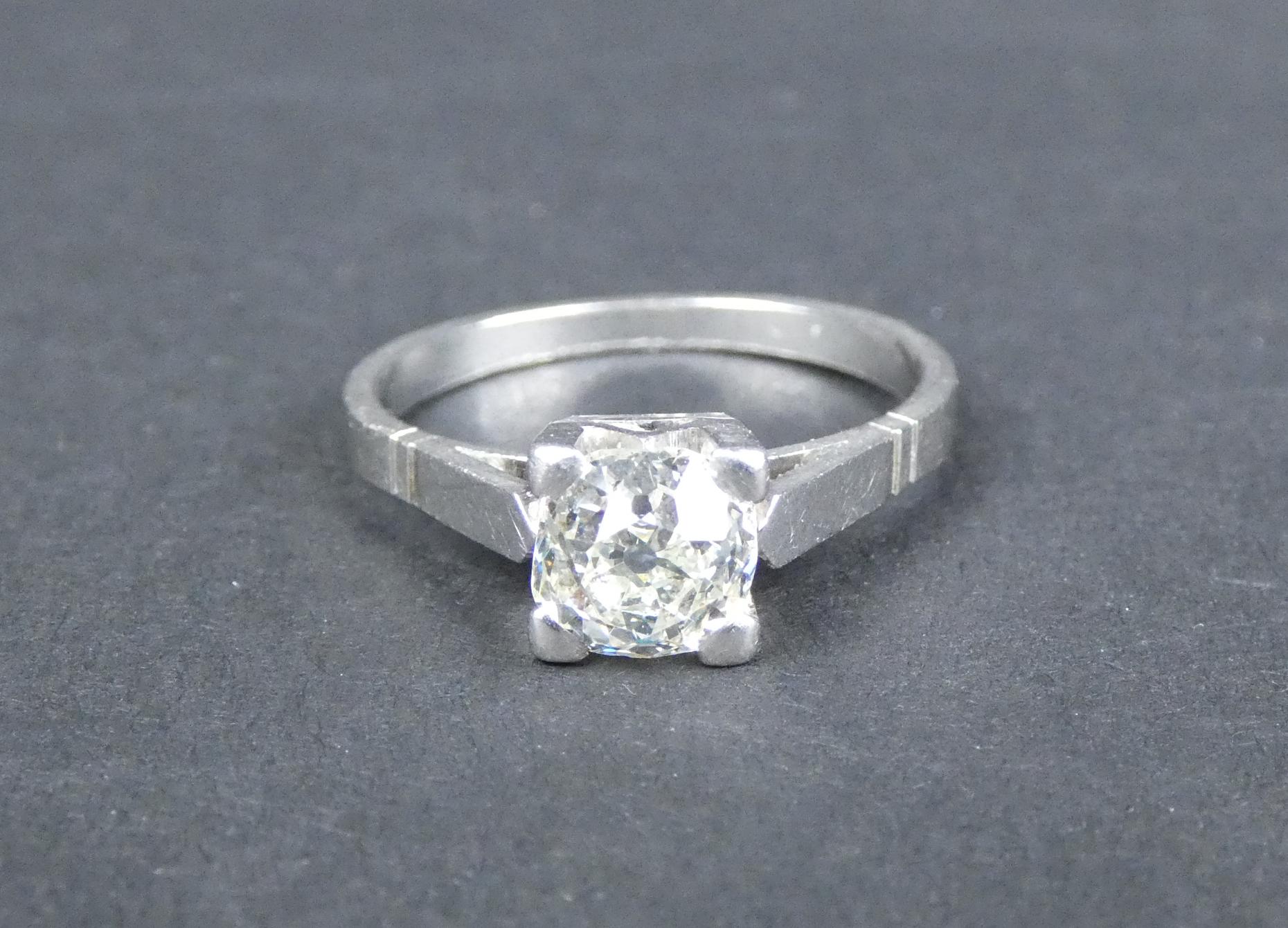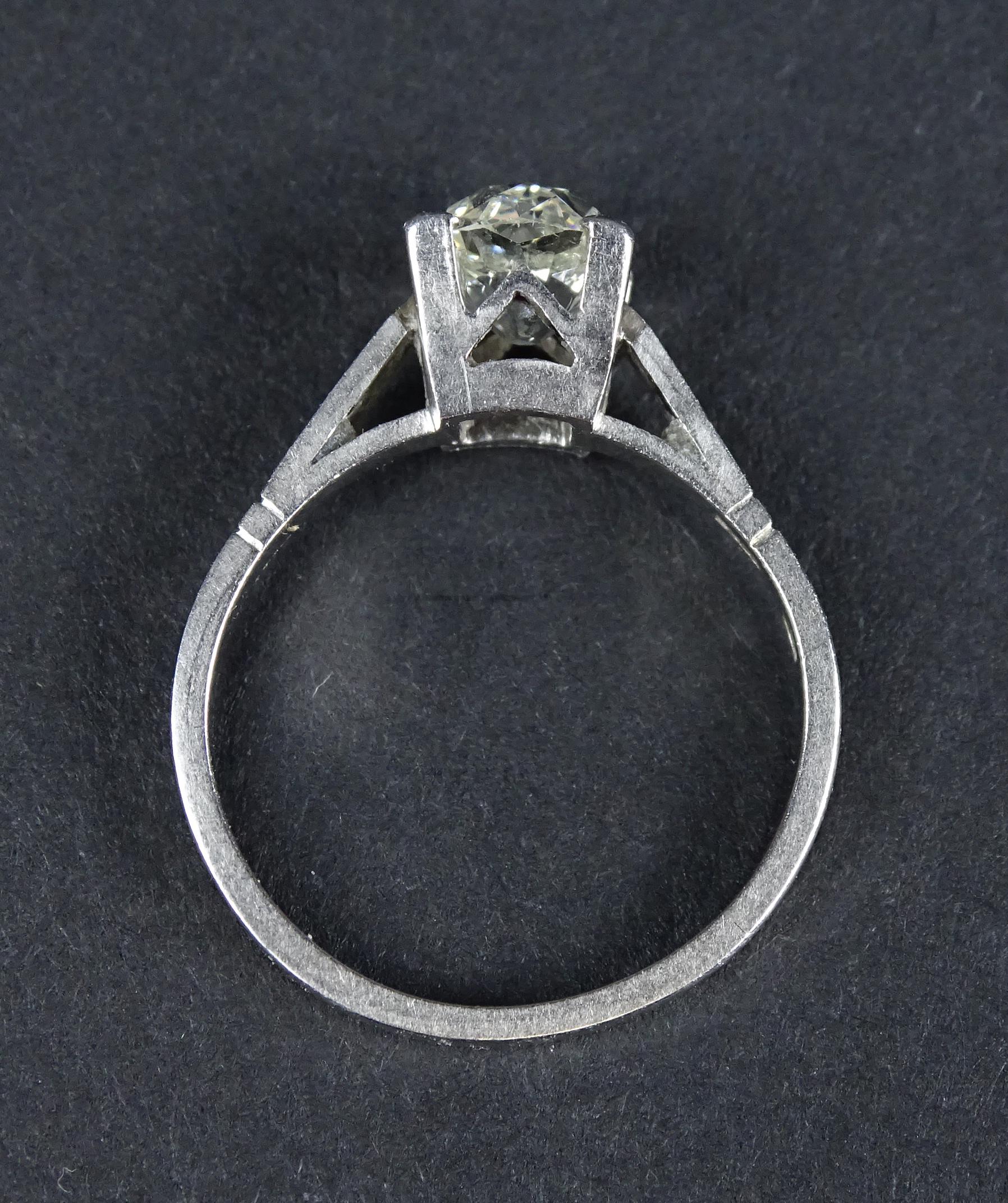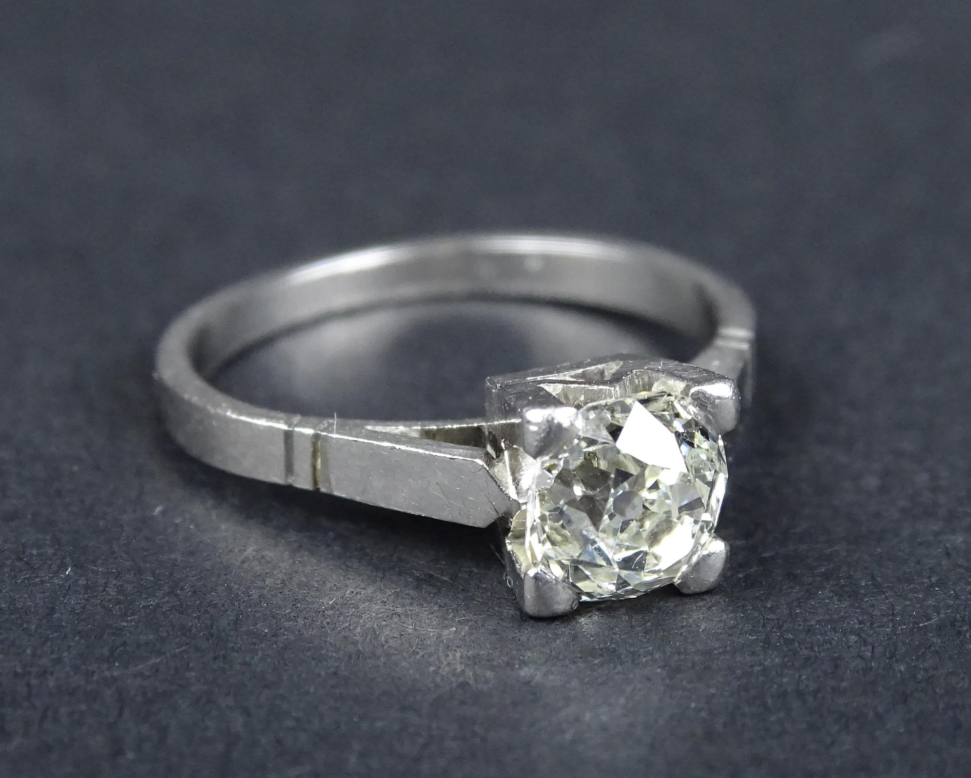Bijou: Bague en platine sertie d'un diamant solitaire taille ancienne d'env. 1cts P: 3,7g TDD: 50
