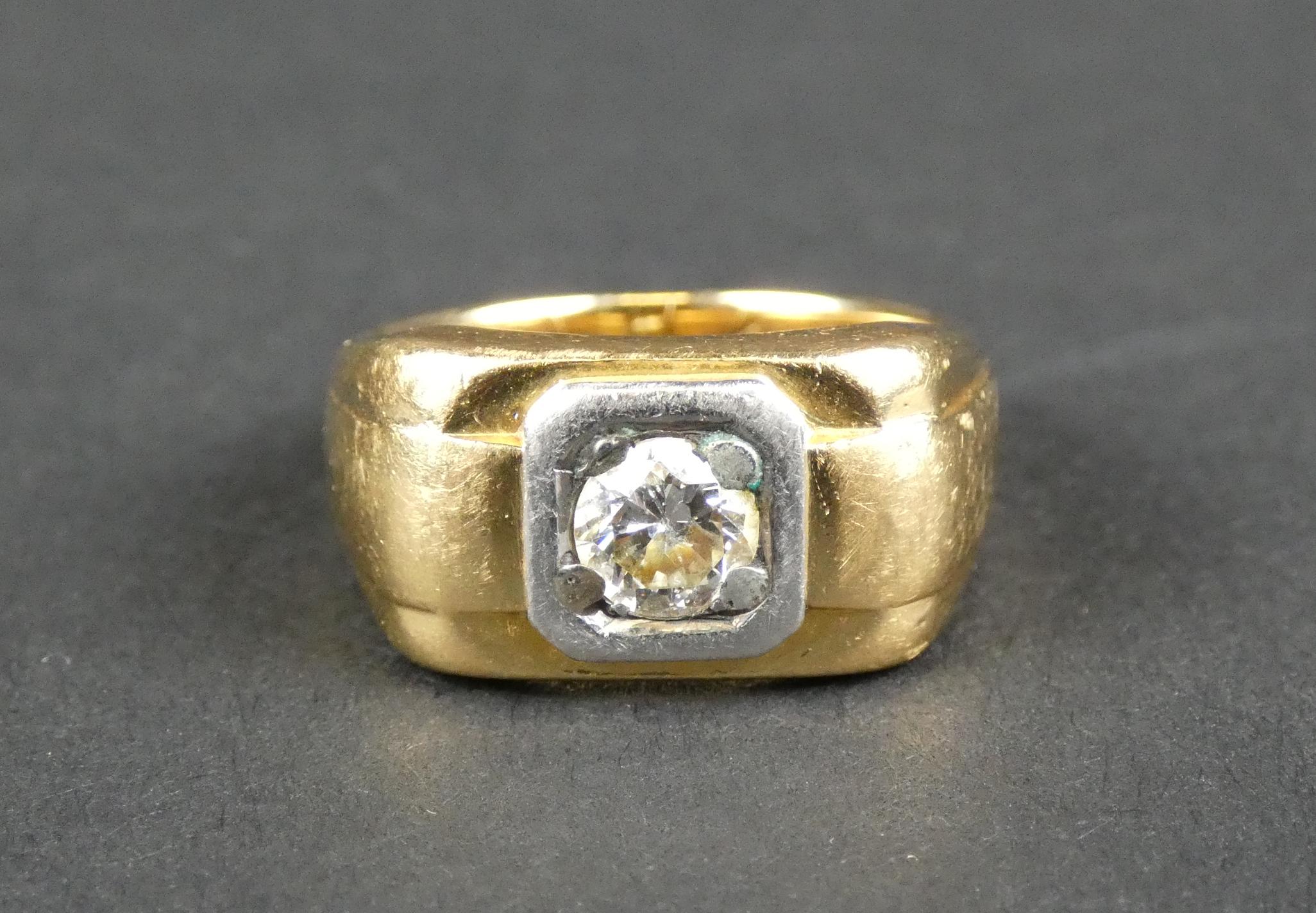 Bijou: Bague/chevalière en or jaune 18K sertie d 'un diamant solitaire d'env. 0,50cts P: 13,9g TDD: 54-55