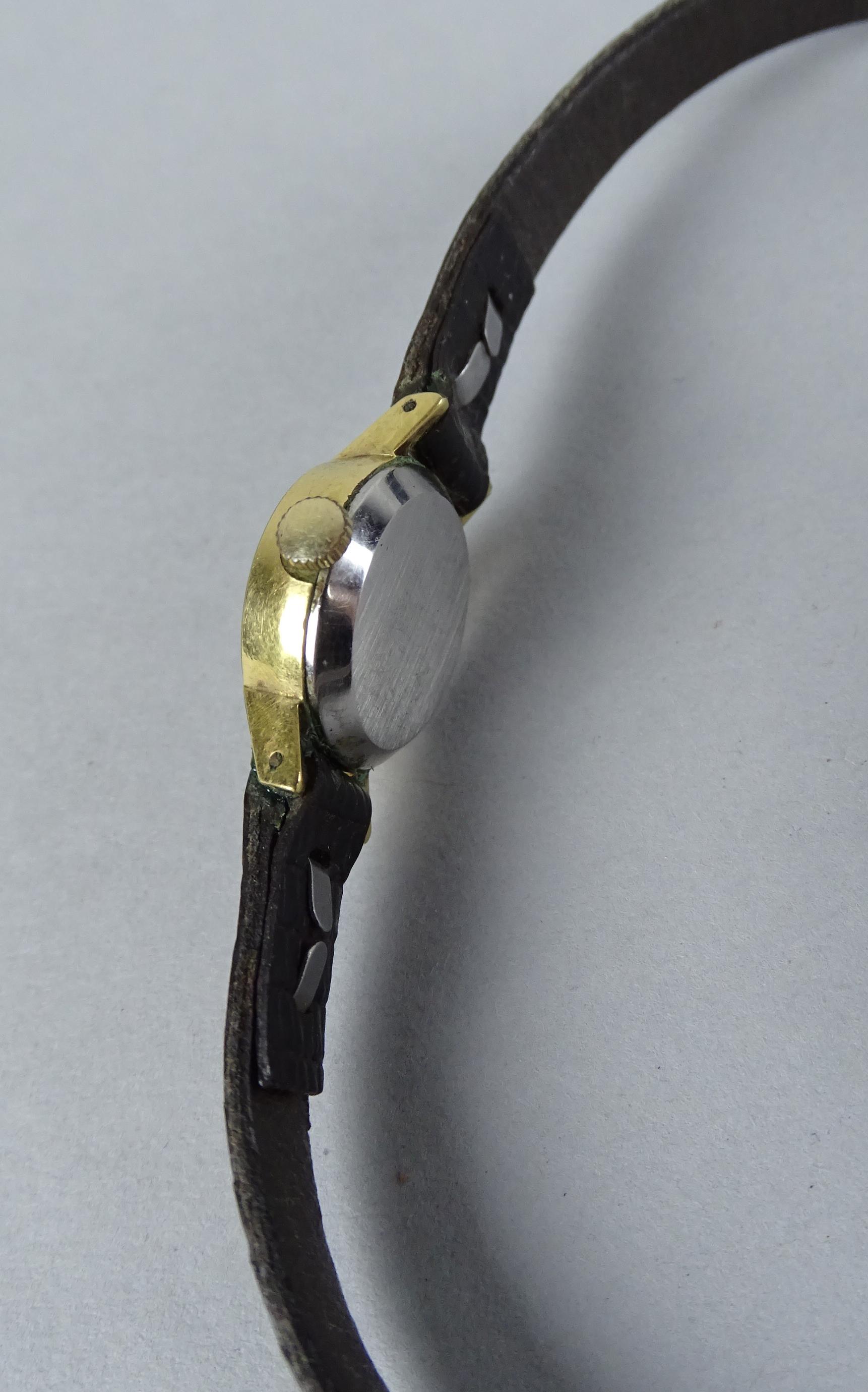 Bijou : Montre bracelet de dame OMEGA métal doré ciselé mvt à remontoir (En état) fond acier bracelet usures