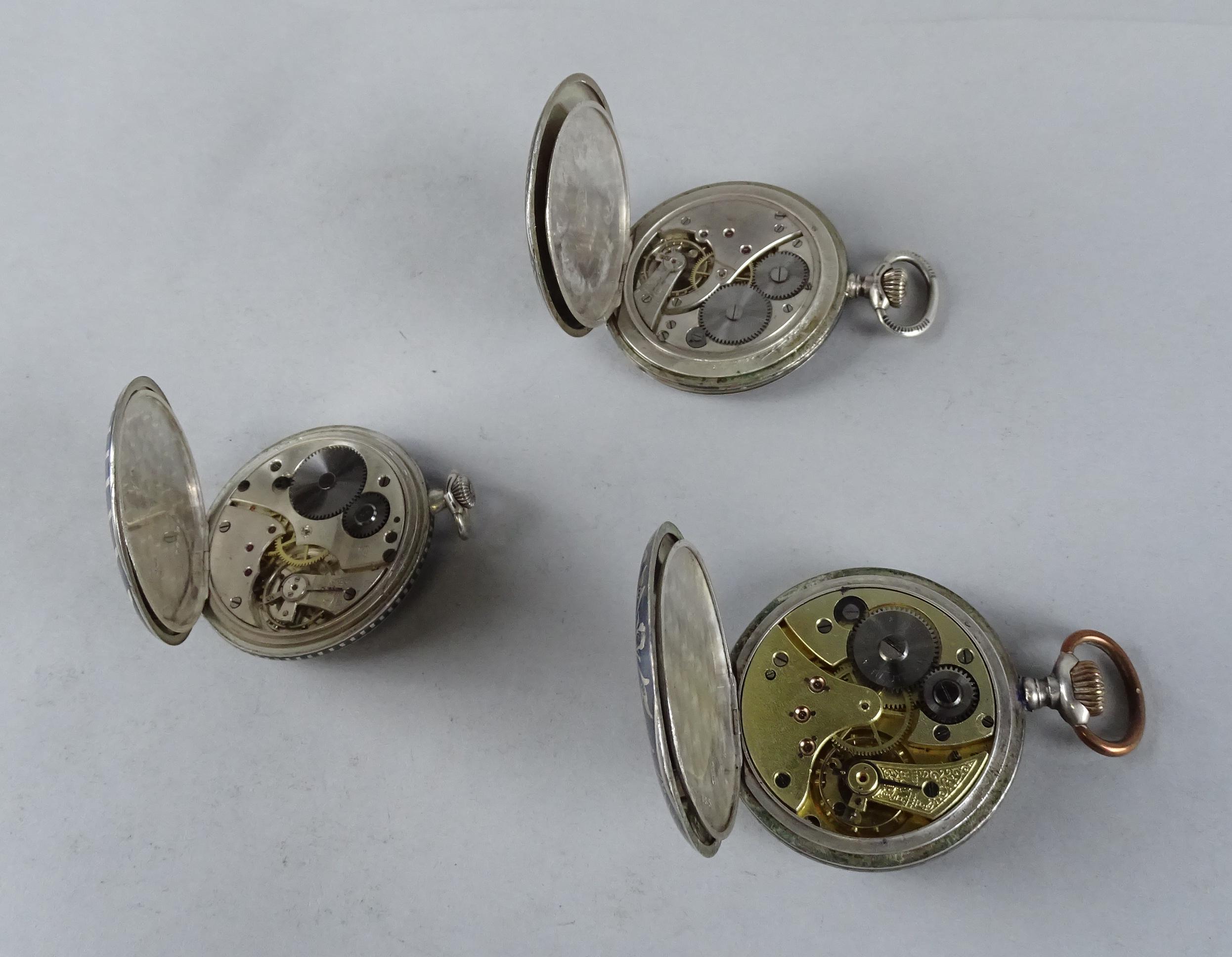 Bijou: Montre de gousset en argent niellé mouvement à remontoir (3) (En état): Savonnette Tavannes Watch (mqe), IAXA, Chronomètre L.Nicolas Liège (3pcs)