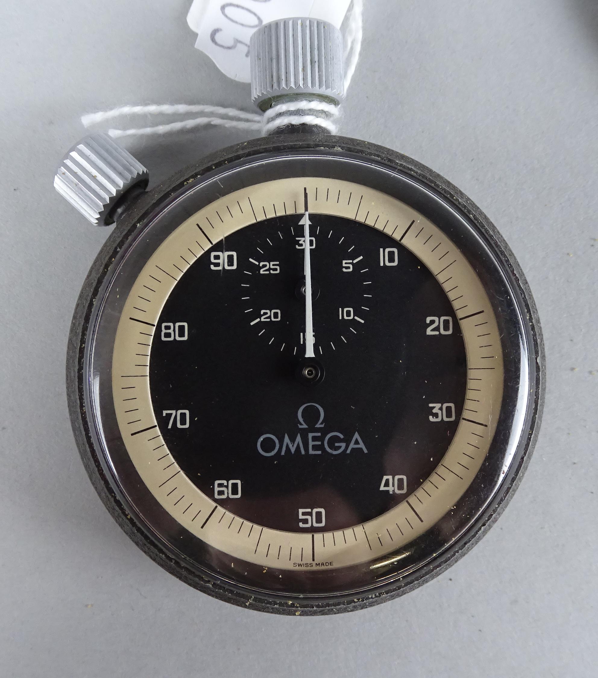 Bijou: Chronographe Stopwatch OMEGA en acier patiné, fond vissé mouvement à remontoir (en état) D:5,2cm