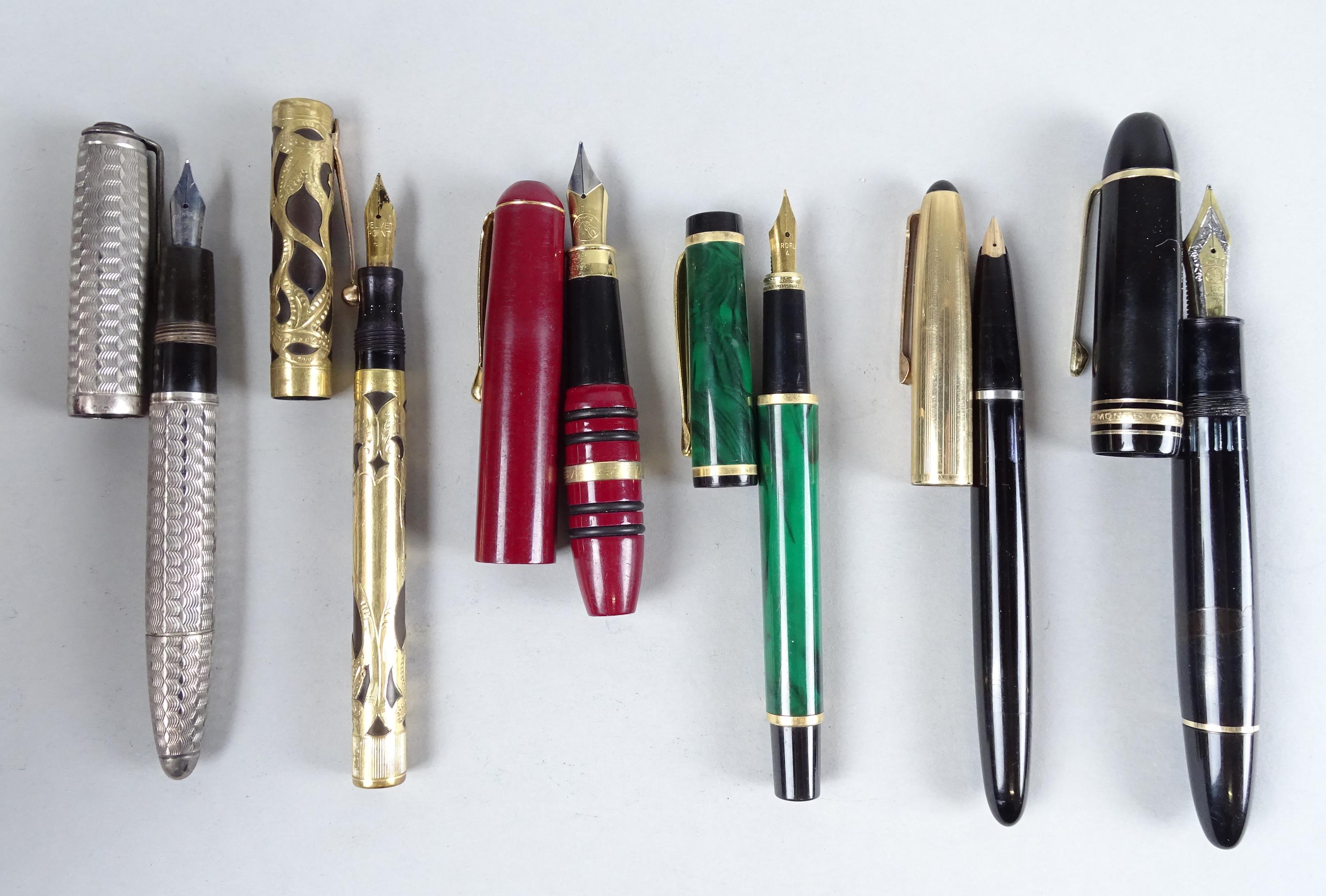 Collection: stylo plume (6) dont LAMY plume en or 14K, MONTBLANC (ds l'état) plume en or 18K, SHEAFFER'S, CENTROPEN Barclay en argent 900