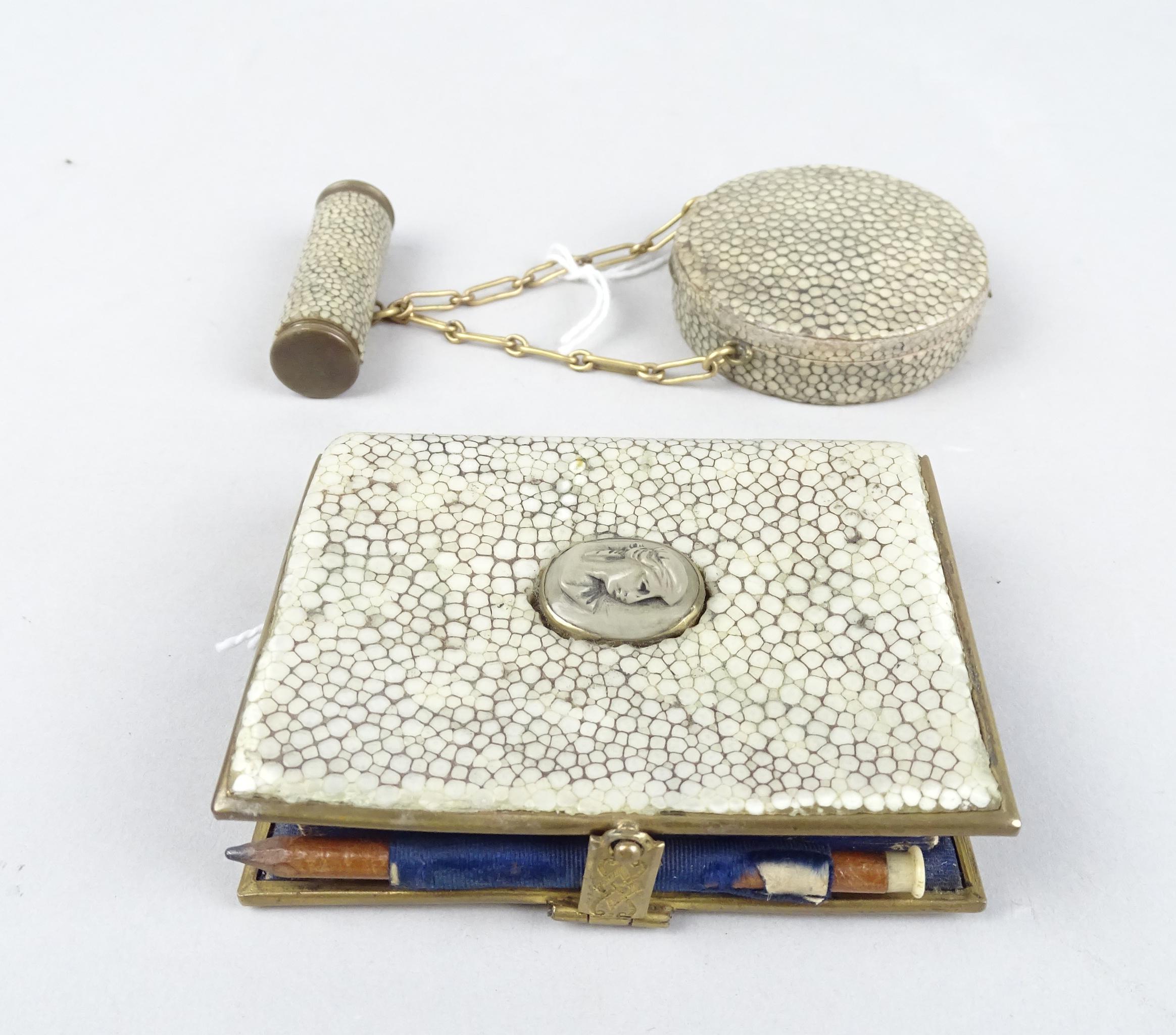 Objet: Carnet de bal H:7,3cm et minaudière en galuchat (2pcs)
