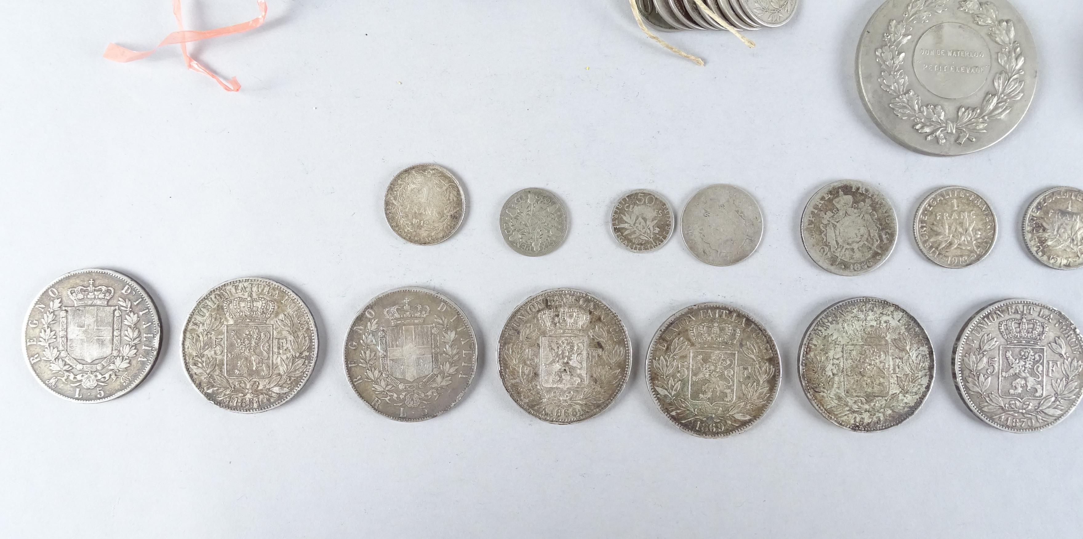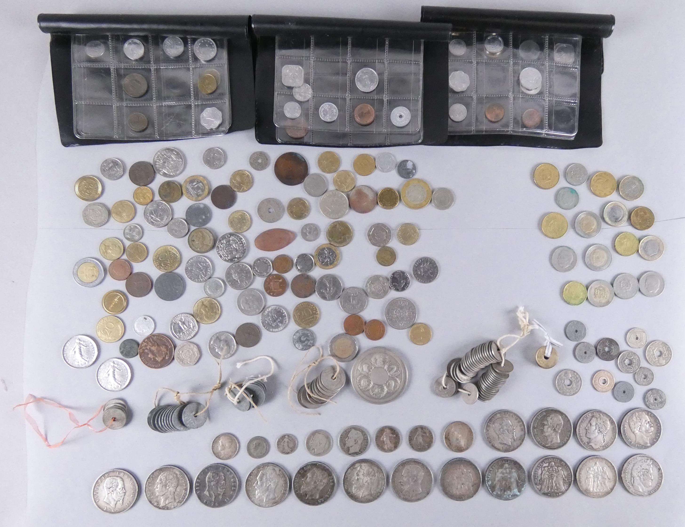 Collection: pièces de monnaie: beau petit lot dont 397g d'argent pur, ll y a de très belles pièces de 5FB 5FF et 5 lires, le reste est du kilo (peu d'euros et de dollars)