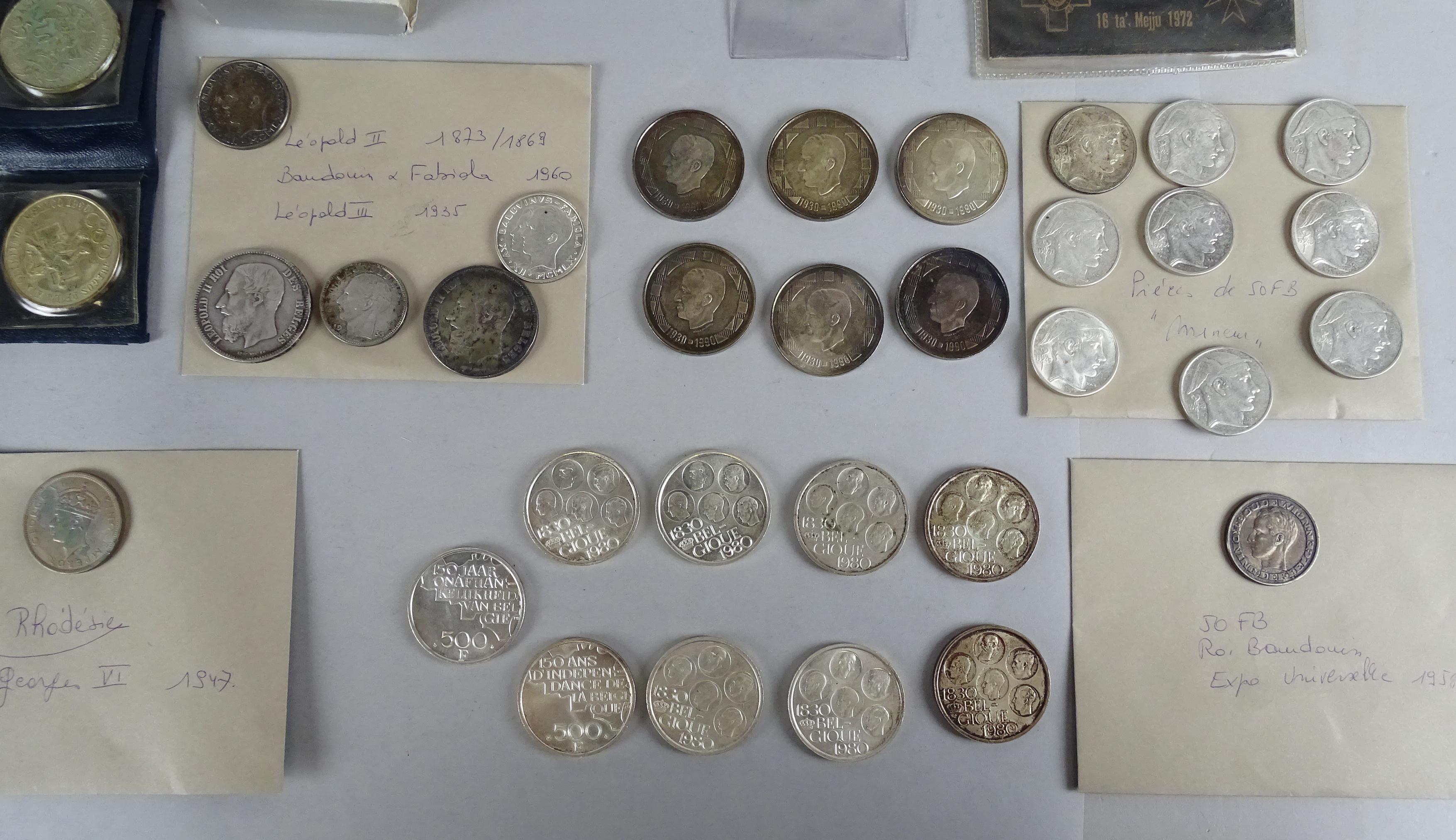 Collection de pièces de monnaie: carton avec pièces dont la majorité est en argent total 1005g d'Ag pur