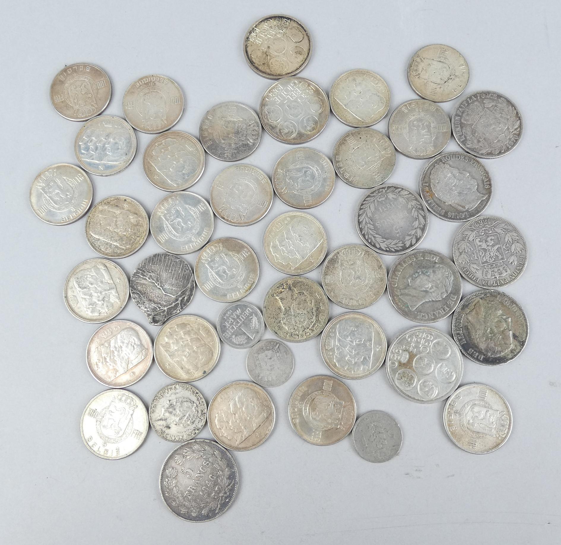 Collection de pièces de monnaie : beau petit lot de pièces en argent belges et françaises (avec pièce de 5FF 1829 D)