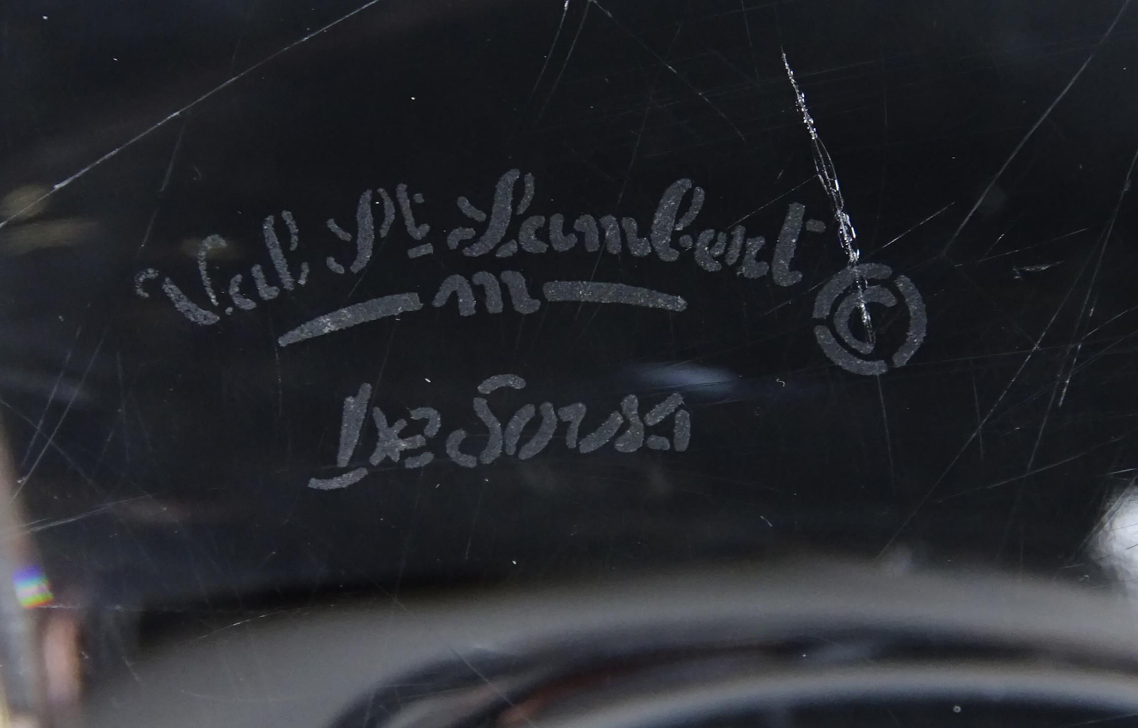 Verrerie: Chat en cristal signé Val Saint Lambert H:7cm L:16cm