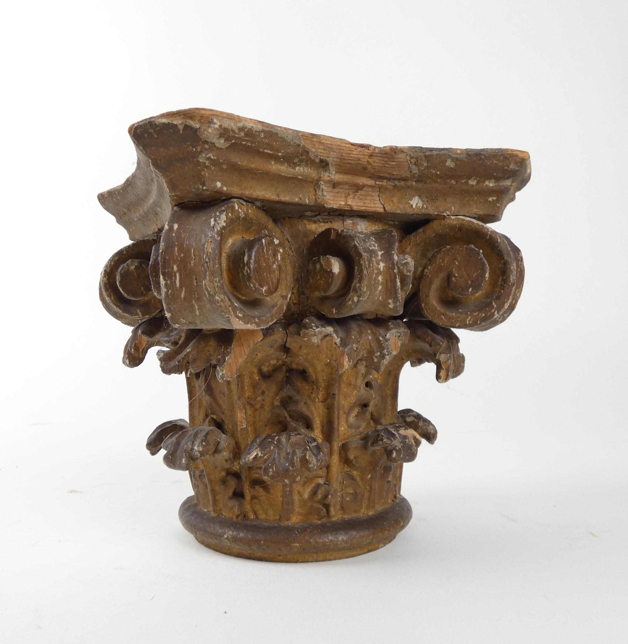 Objet: Chapiteau corinthien en bois sculpté et doré (lacunes) H:14,4 cm
