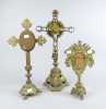 Religieux: 3 ostensoirs en laiton (acc, mq) H: de 30 à 50cm