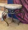 Meuble: Table guéridon monture en fer forgé et plateau rond en marbre de Rance (