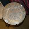 Meuble: Table guéridon monture en fer forgé et plateau rond en marbre de Rance (trace calcaire) H: 49cm Diam: 43cm