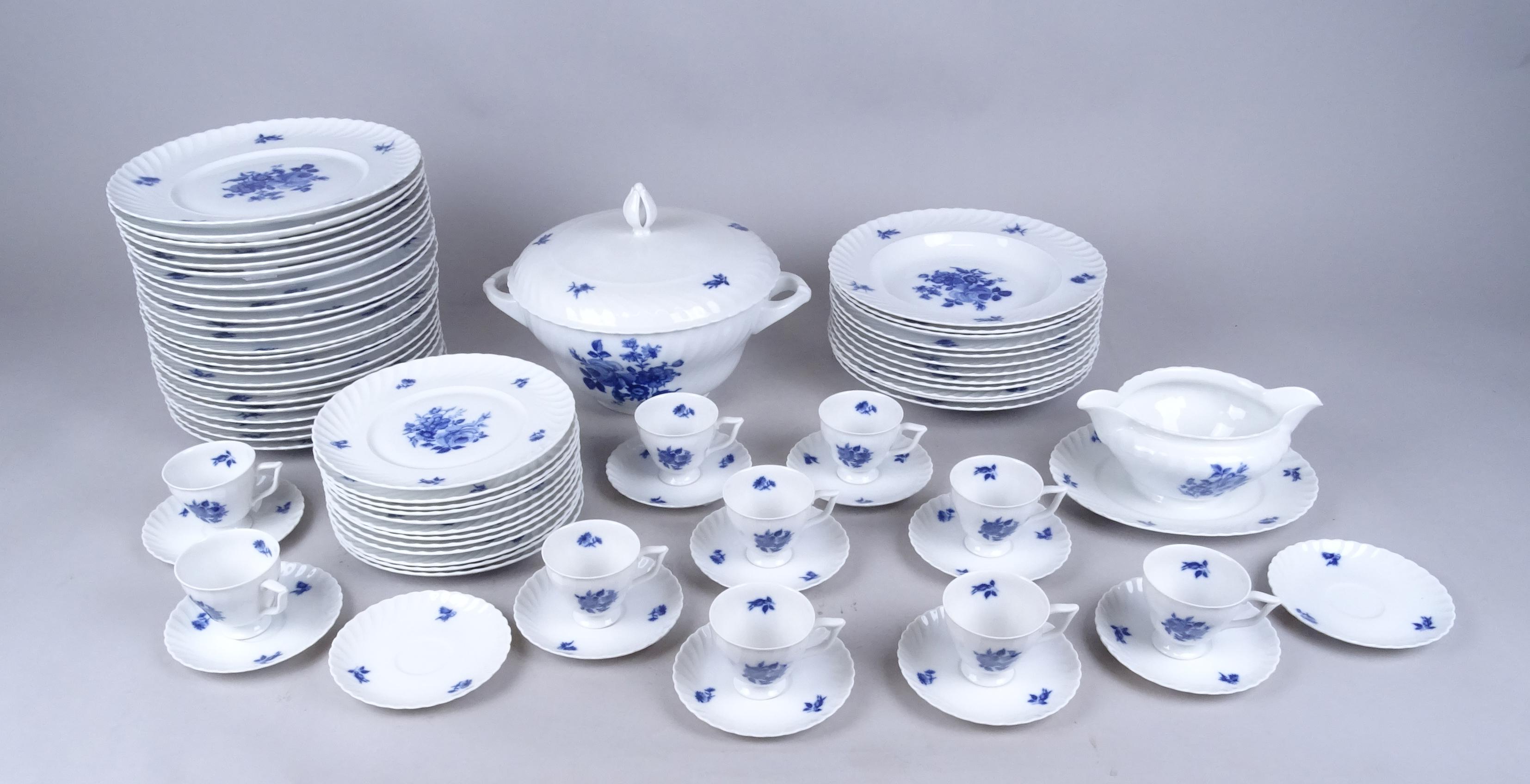 Céramique: (60) service à diner en porcelaine Royal Tettau Germany décor de fleurs soup, sauc, 24 ass pl, 12 ass HO, 12 ass cr, 10 tasses à moka et s/t
