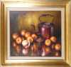 Tableau HST -Nature morte à l'orange- daté 1971 signé (illisible) 50x60cm cadre doré