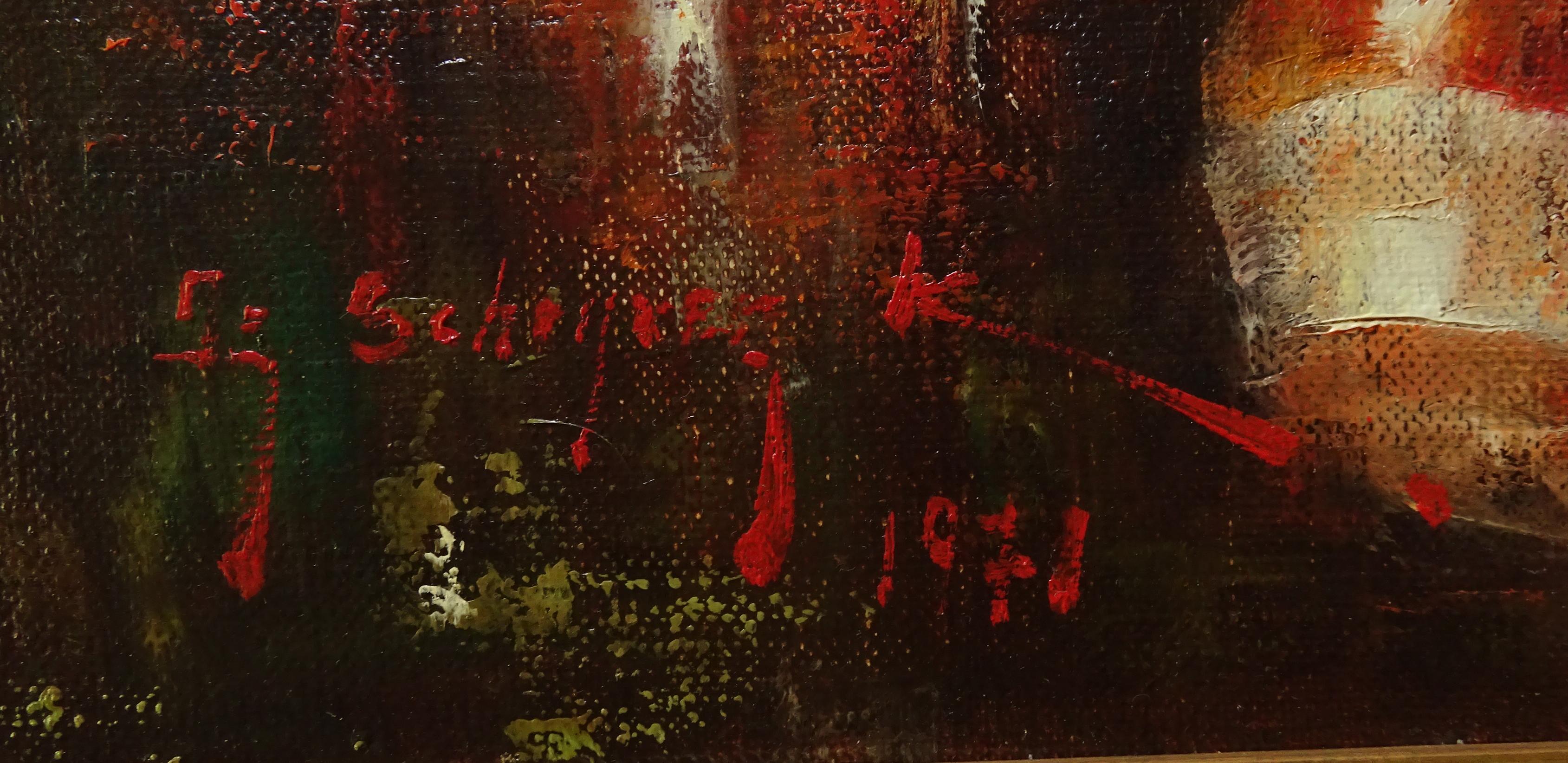Tableau HST -Nature morte à l'orange- daté 1971 signé (illisible) 50x60cm cadre