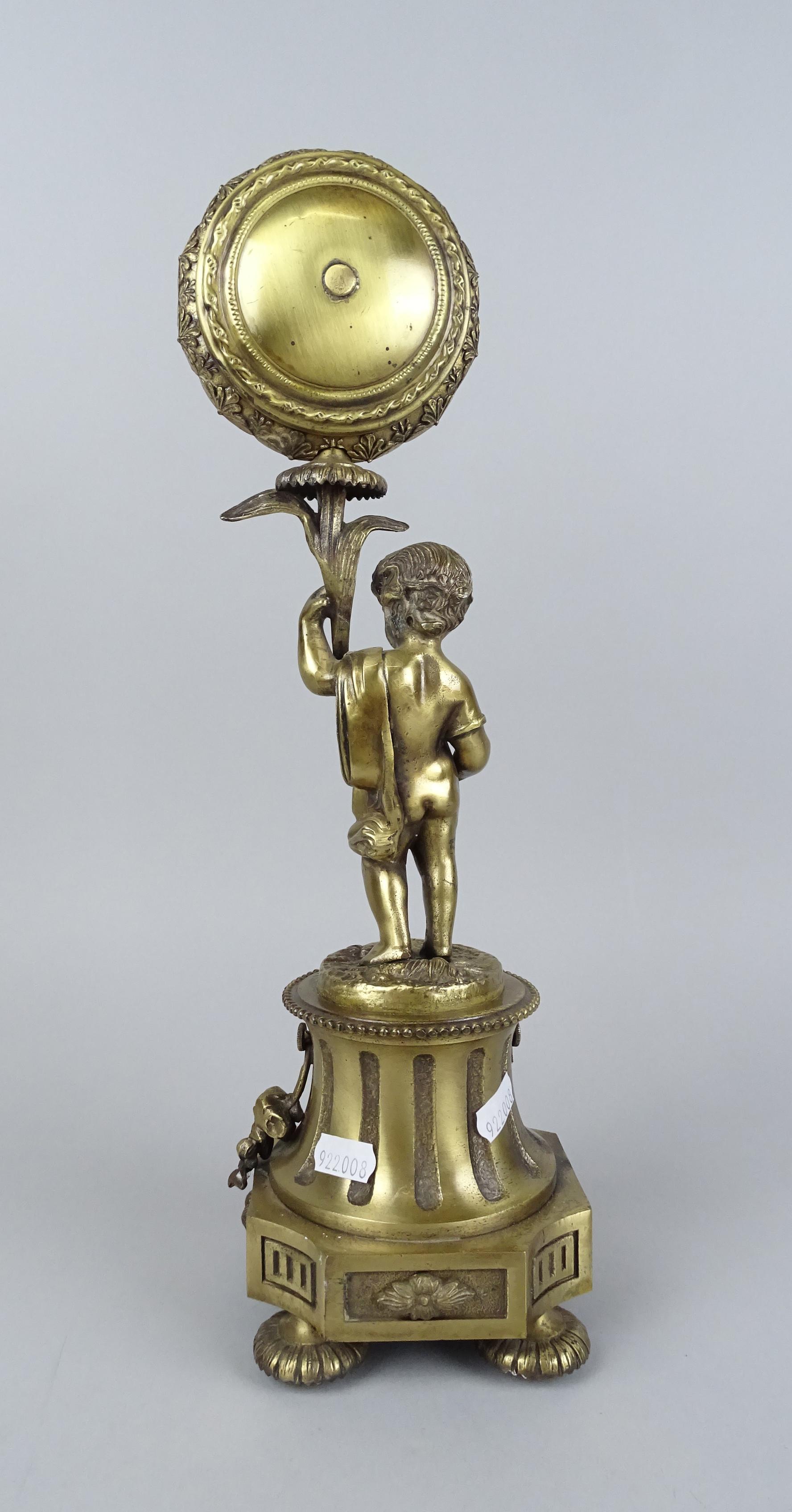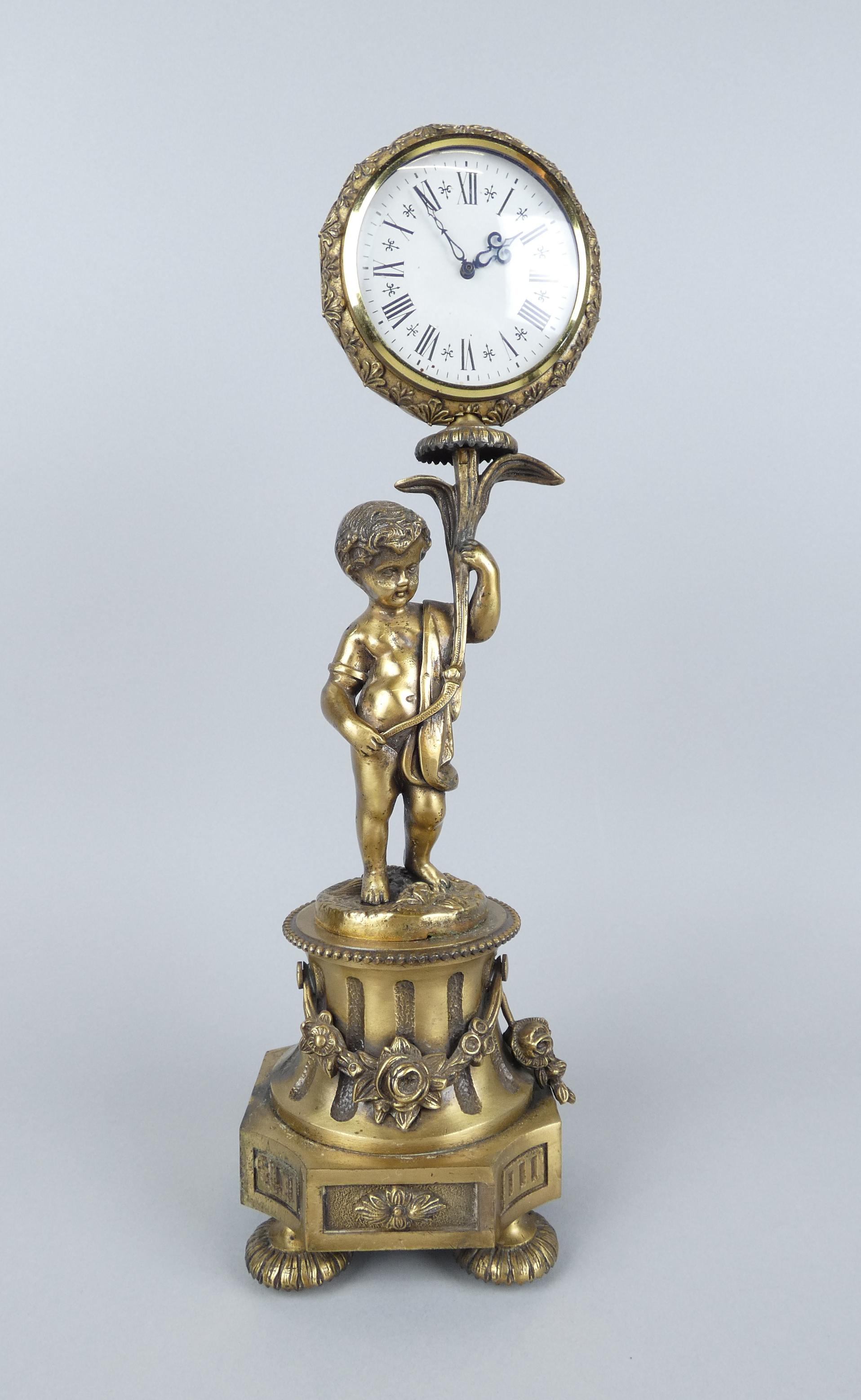 Horlogerie: Pendule en métal doré -putto tenant une fleur- made in Italy H:40cm