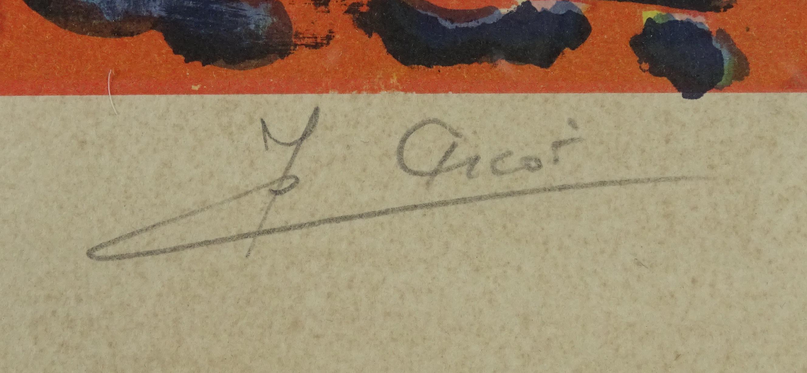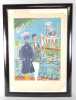 Estampe: Lithographie couleur -Couple au bord de l'eau- N° 44/275 signé *PICOT J-C.* (Jean-Claude) (1933, 2020) 52x39cm cadre noir sous verre