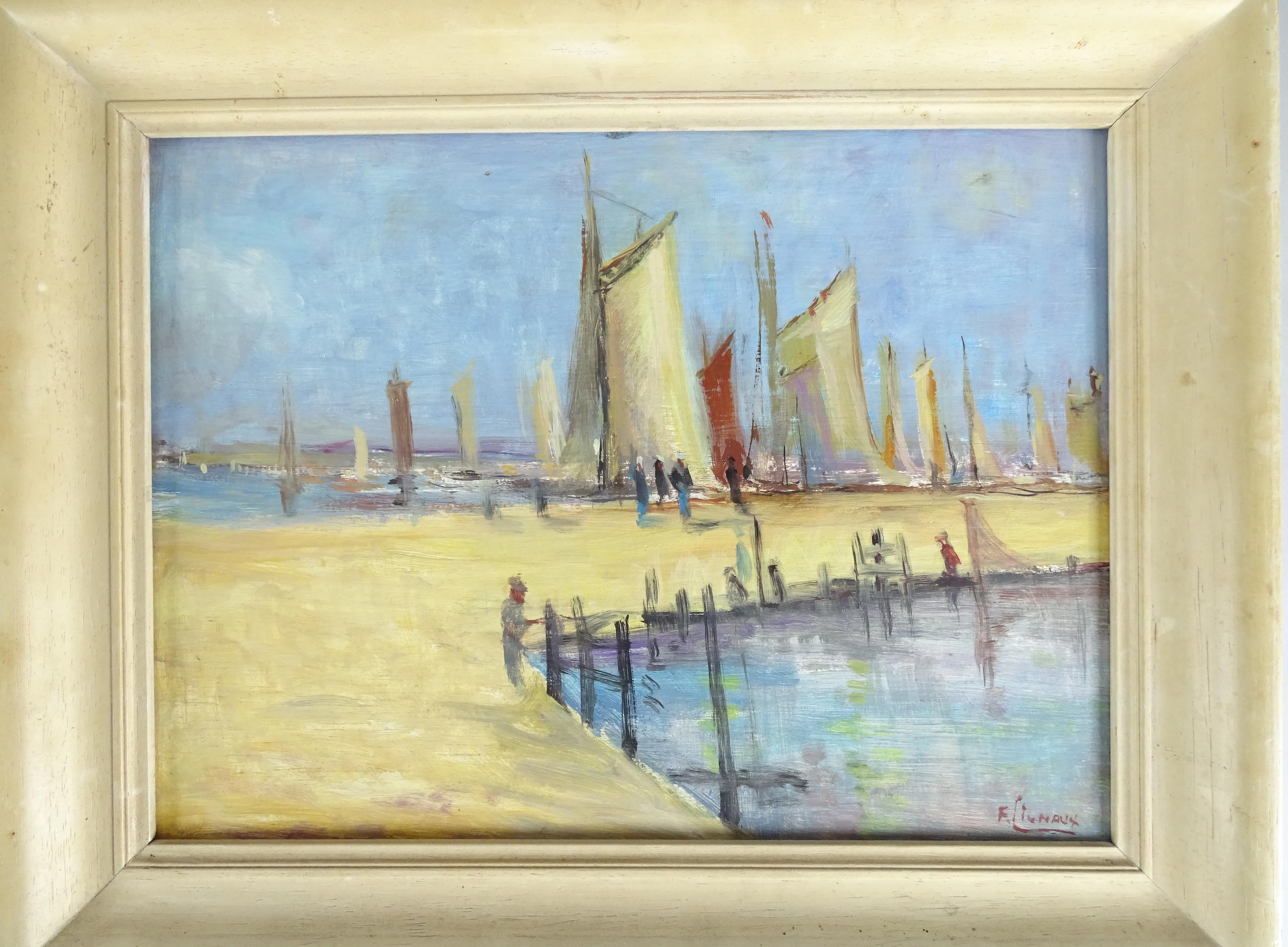 Tableau (2) HSP -port- et HST -ruelle- signés *LIENAUX F.* (Fernand) (La Louvière1897, 1980) 30X39cm et 48x40cm cadre (2pcs)