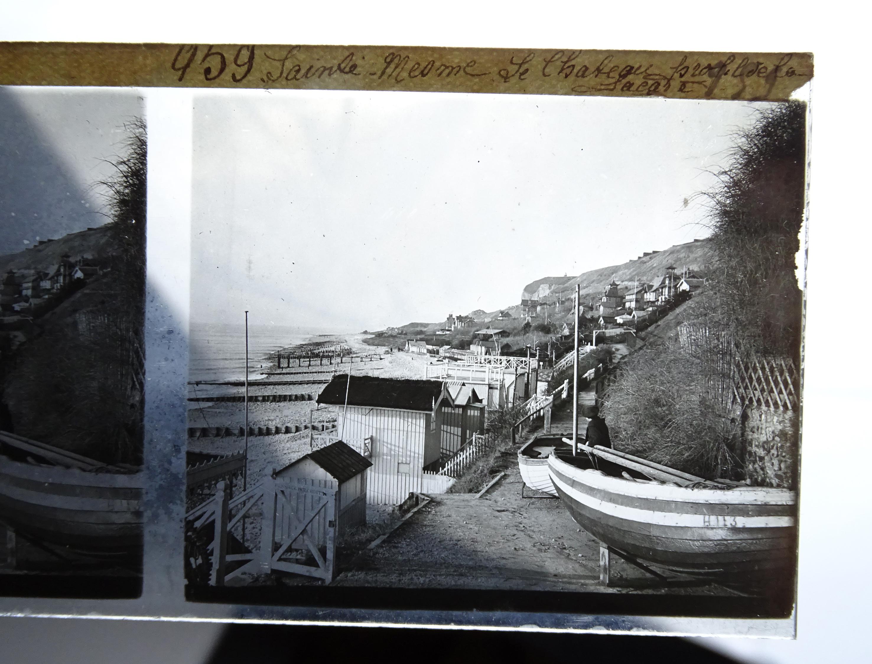Objets: Stéréoscope en bois avec important lot de photos sur carton et plaques d