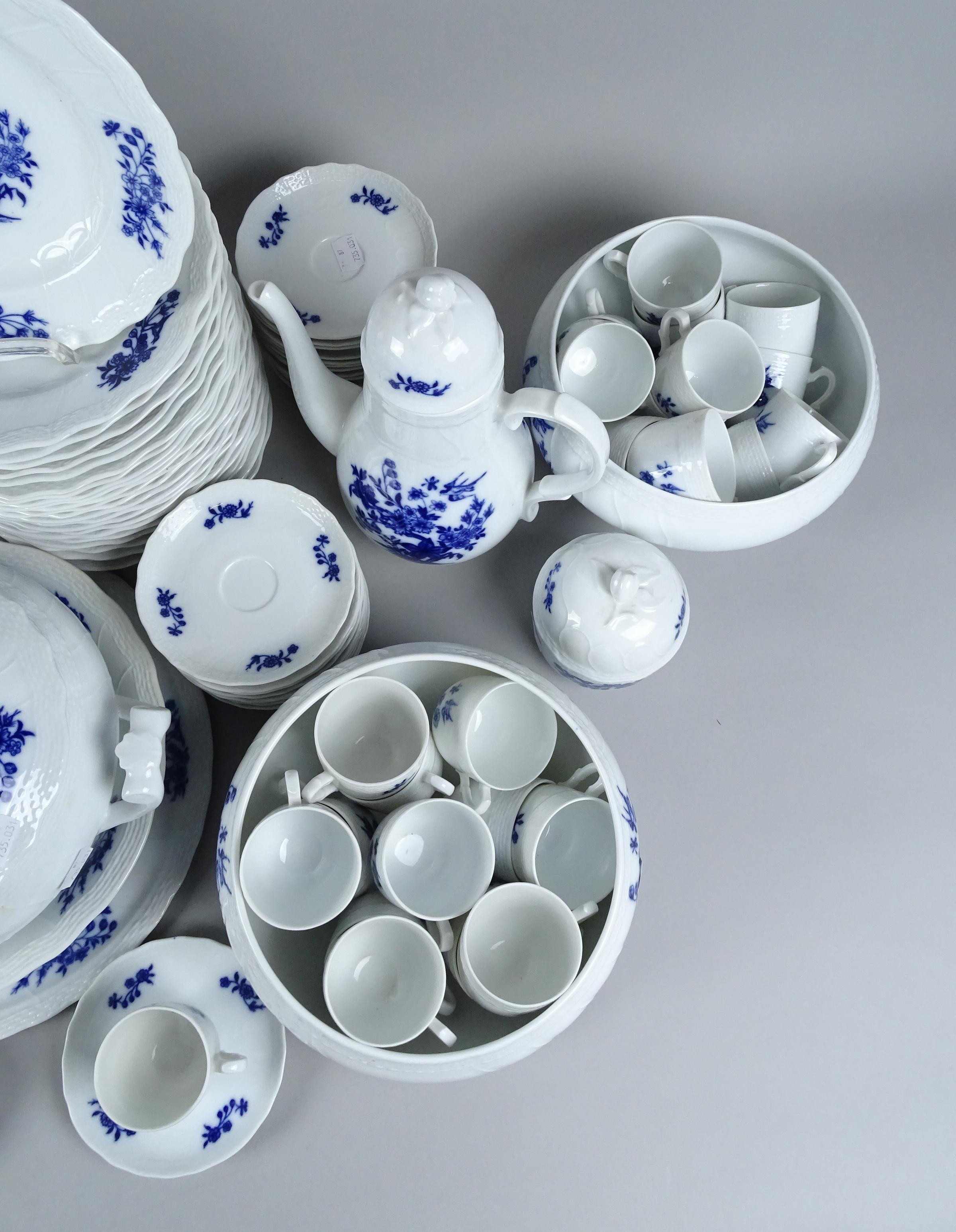 Céramique: partie de service à dîner et à café en porcelaine Cérabel Baudour décor à la mouche et l'oiseau (+/-85pcs) dont 24 ass pl/ cr/ HO, soup, lég, 2 sal, 25T s/t.