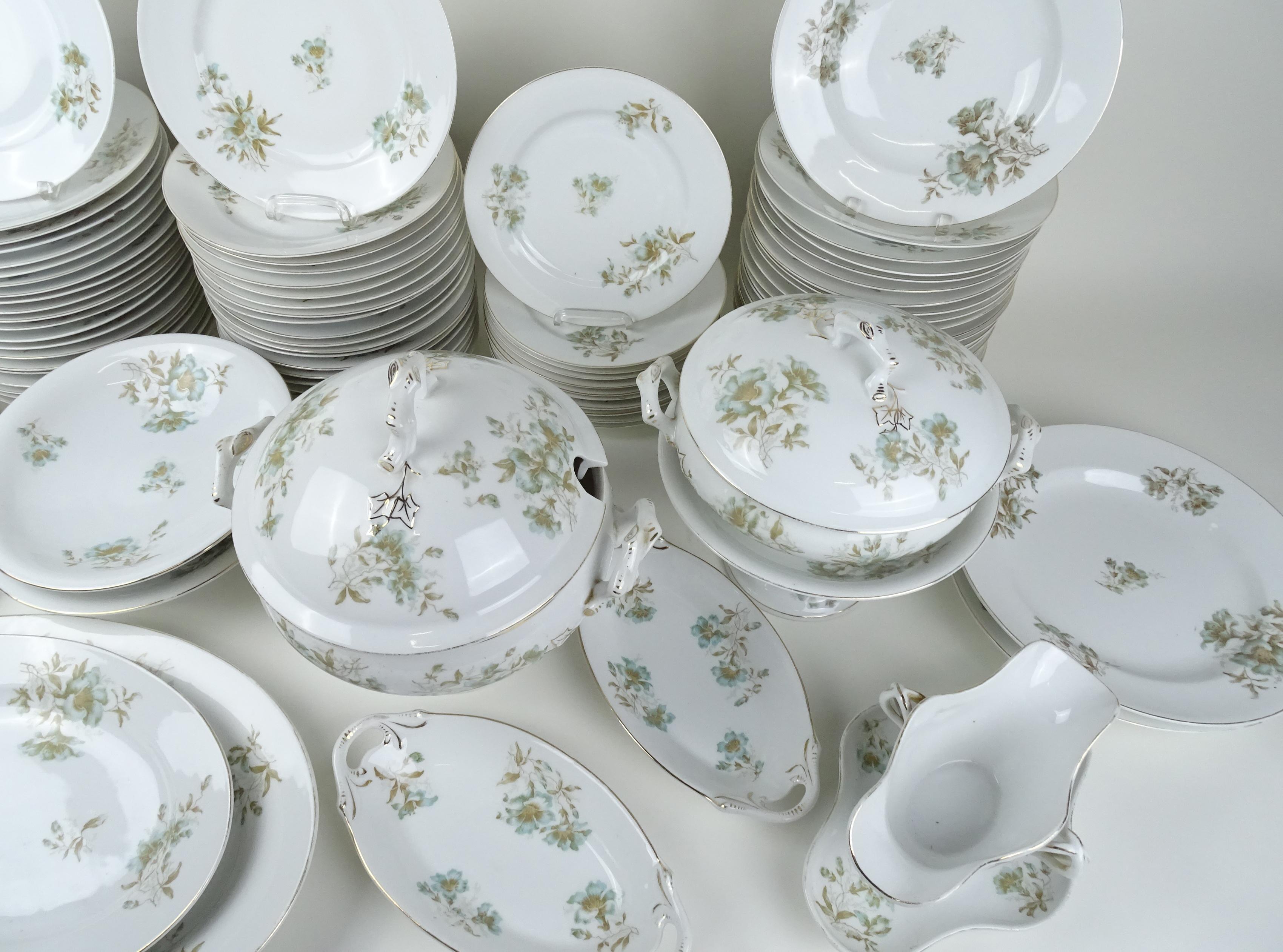 Céramique: Service à dîner à décor de fleurs (+/-80pcs): dont: soupière, légumie