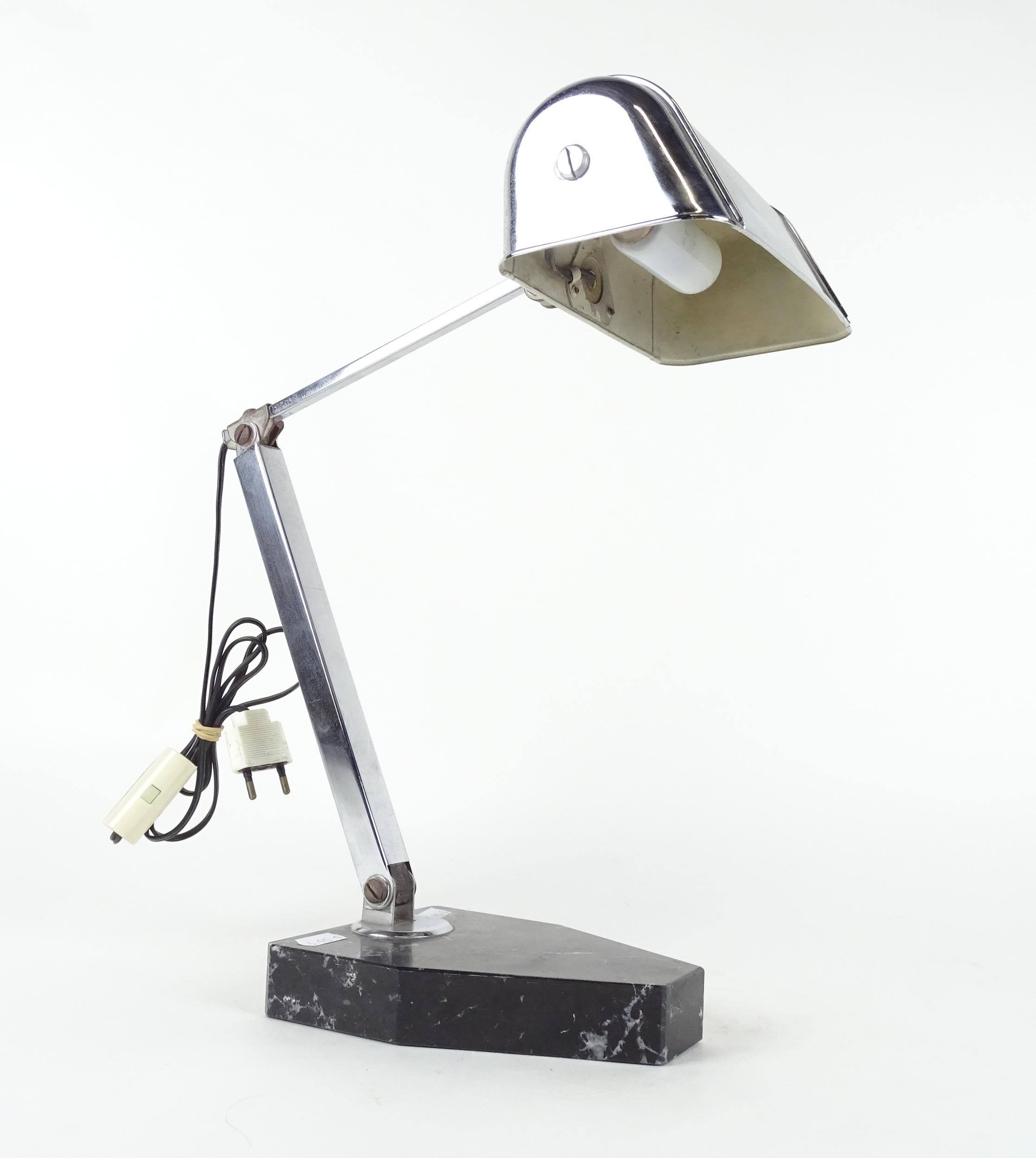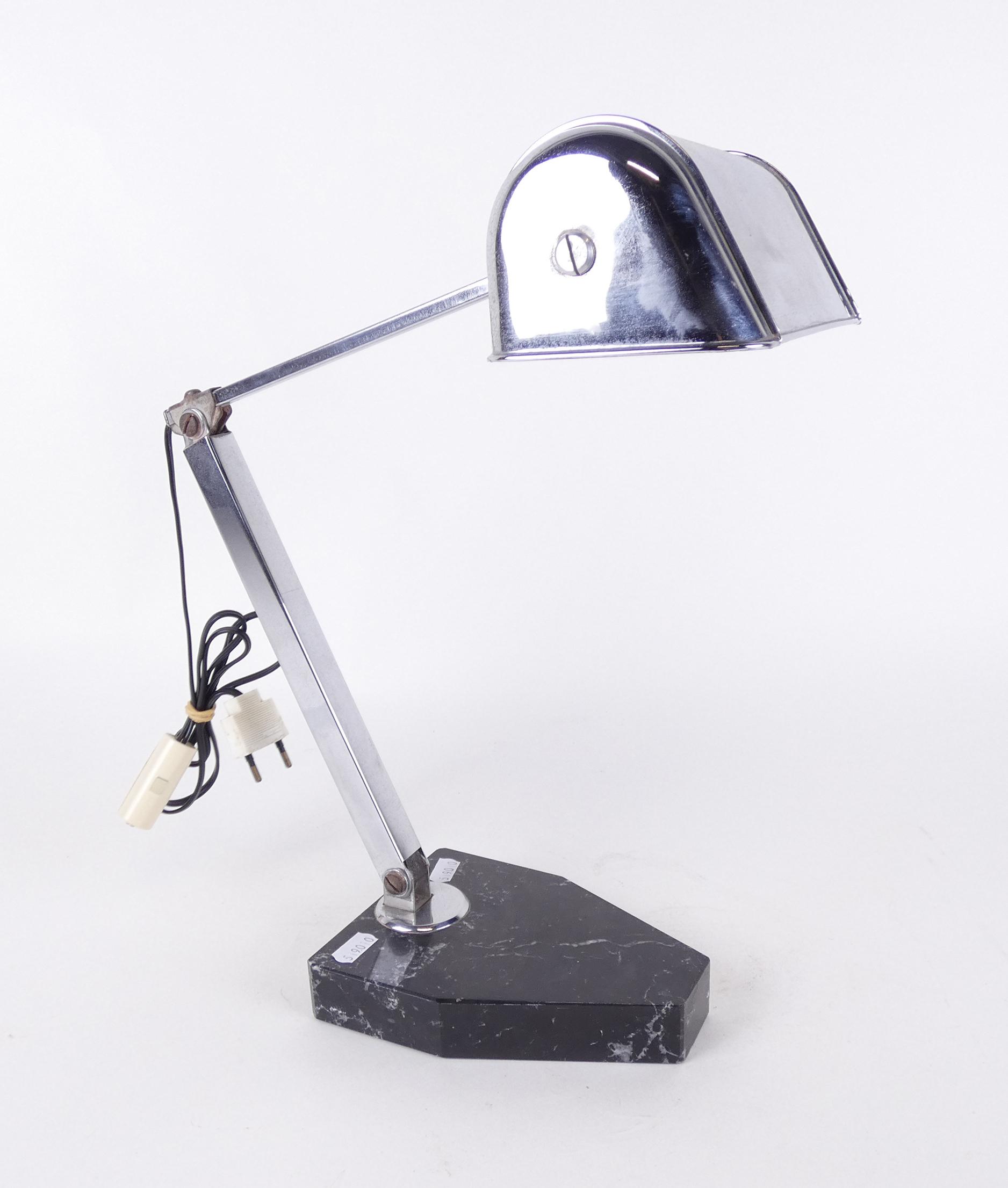 Luminaire: Lampe de Bureau Art Déco (pt traces oxy) en métal chromé piètement en marbre H:env40cm
