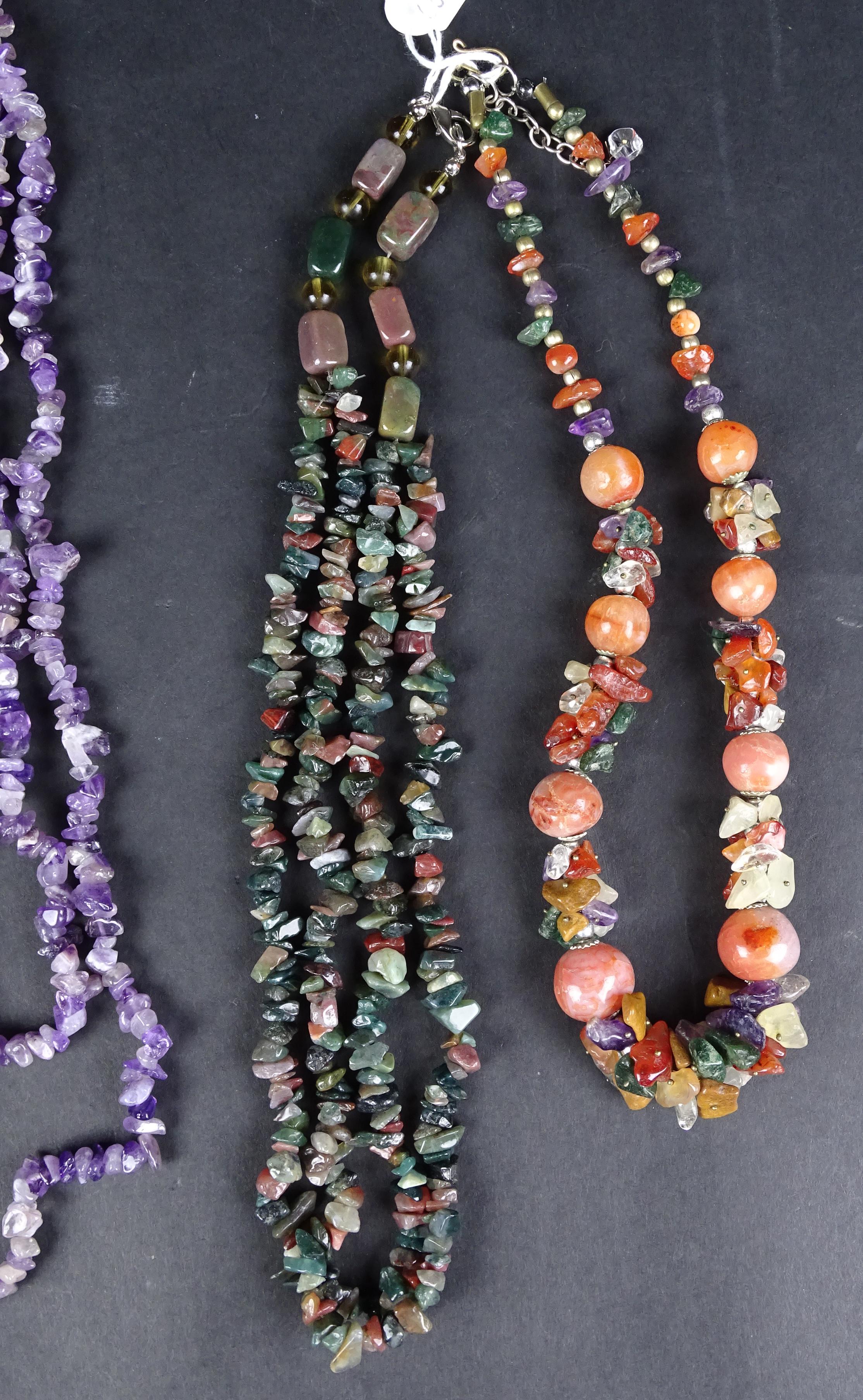 Bijou: 4 colliers de perles / chips en pierre (améthyste, agate indienne, cornal
