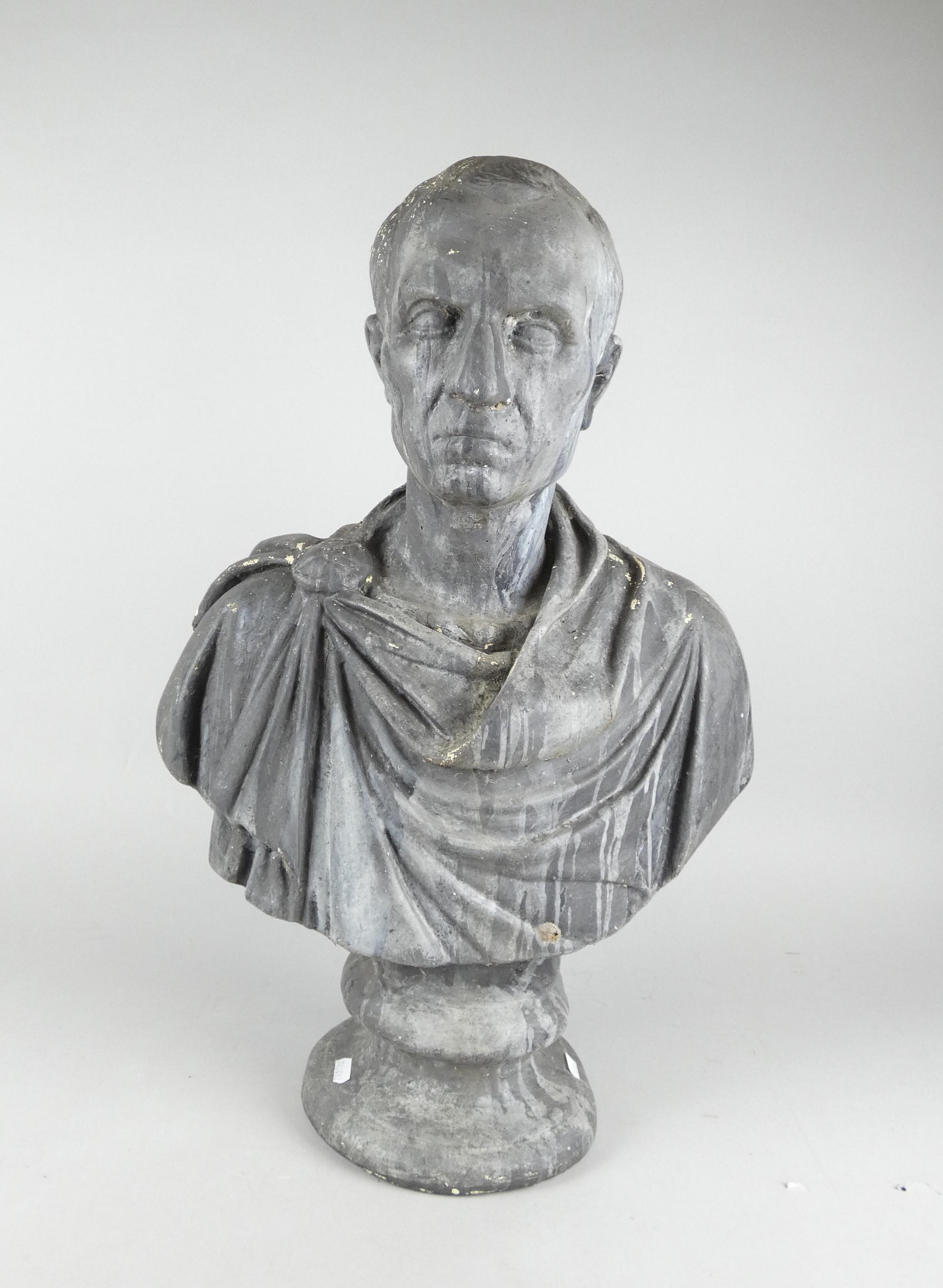 Sculpture: Buste de César en pierre reconstituée patiné (traces d'usures) H:71cm