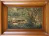 Tableau HSB - Barque sous un saule au bord de la Suippe effet de soleil - monogramé *GUERY A.* (Armand) (1850 - 1912) 22x35 cadre bois