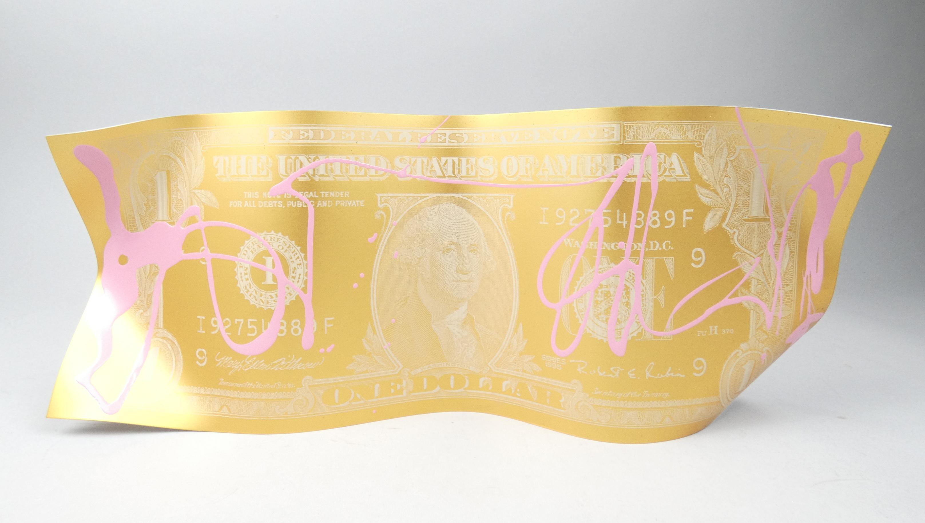 Sculpture: en aluminium -One Dollar Gold Bubble Gum- avec certificat daté 12/202