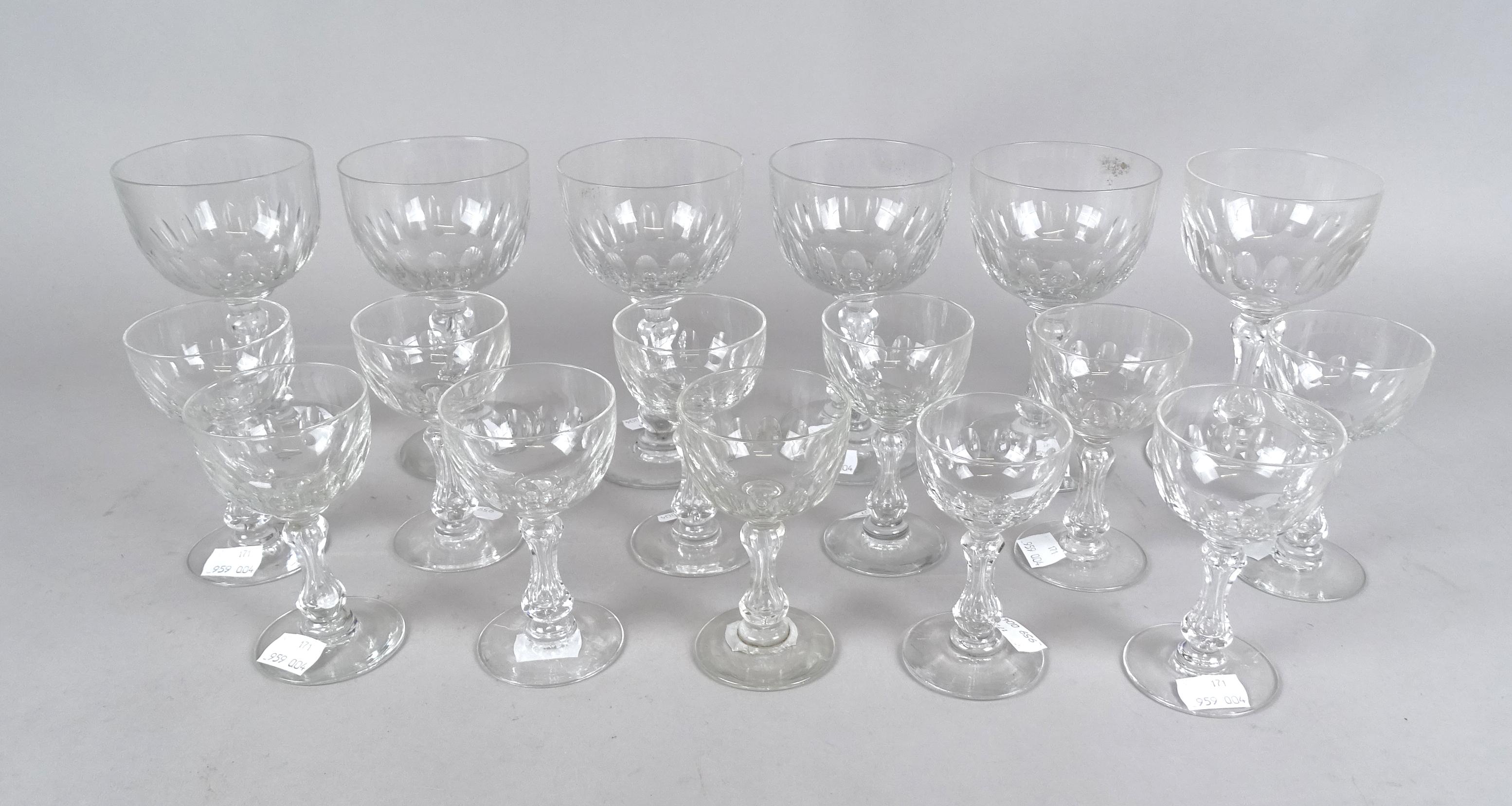Verrerie: Verres en cristal taillé Val St Lambert Modèle -OLIVIER- (17) 6v eau, 10v vin, 1v porto