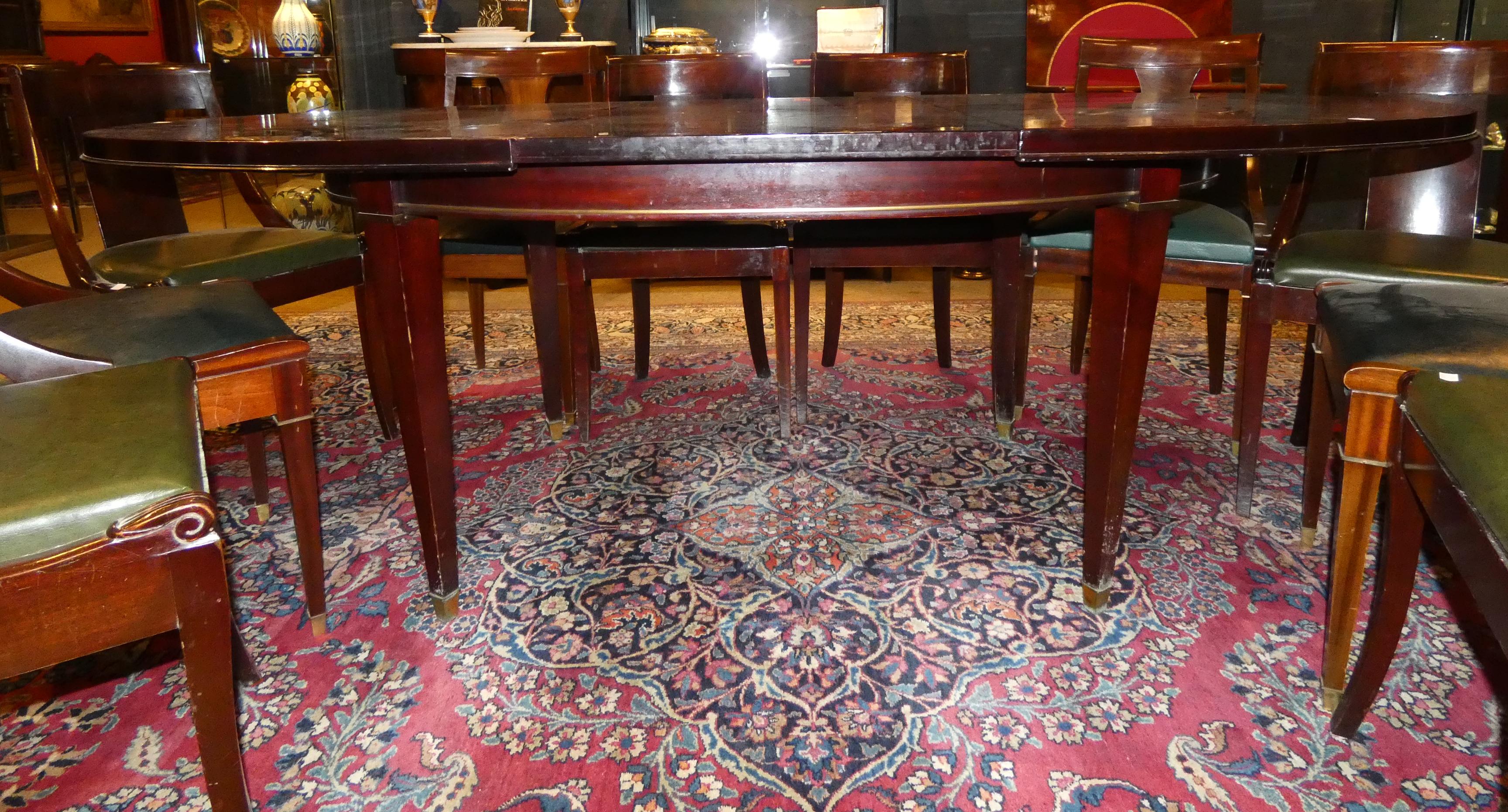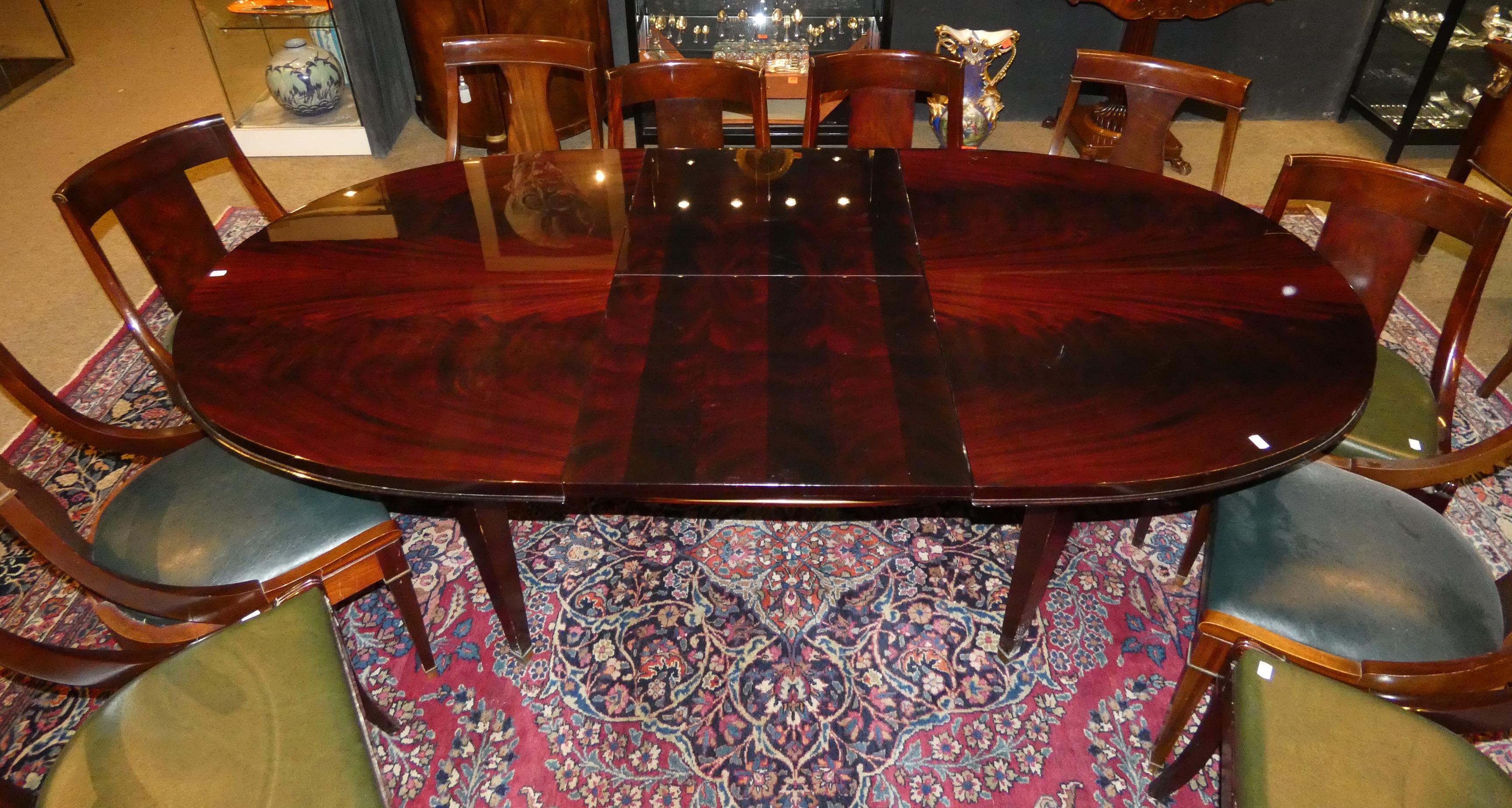 Meuble: Table et chaises (2 différents modèles) de style EMPIRE en acajou et placage d'acajou 76x160x105cm