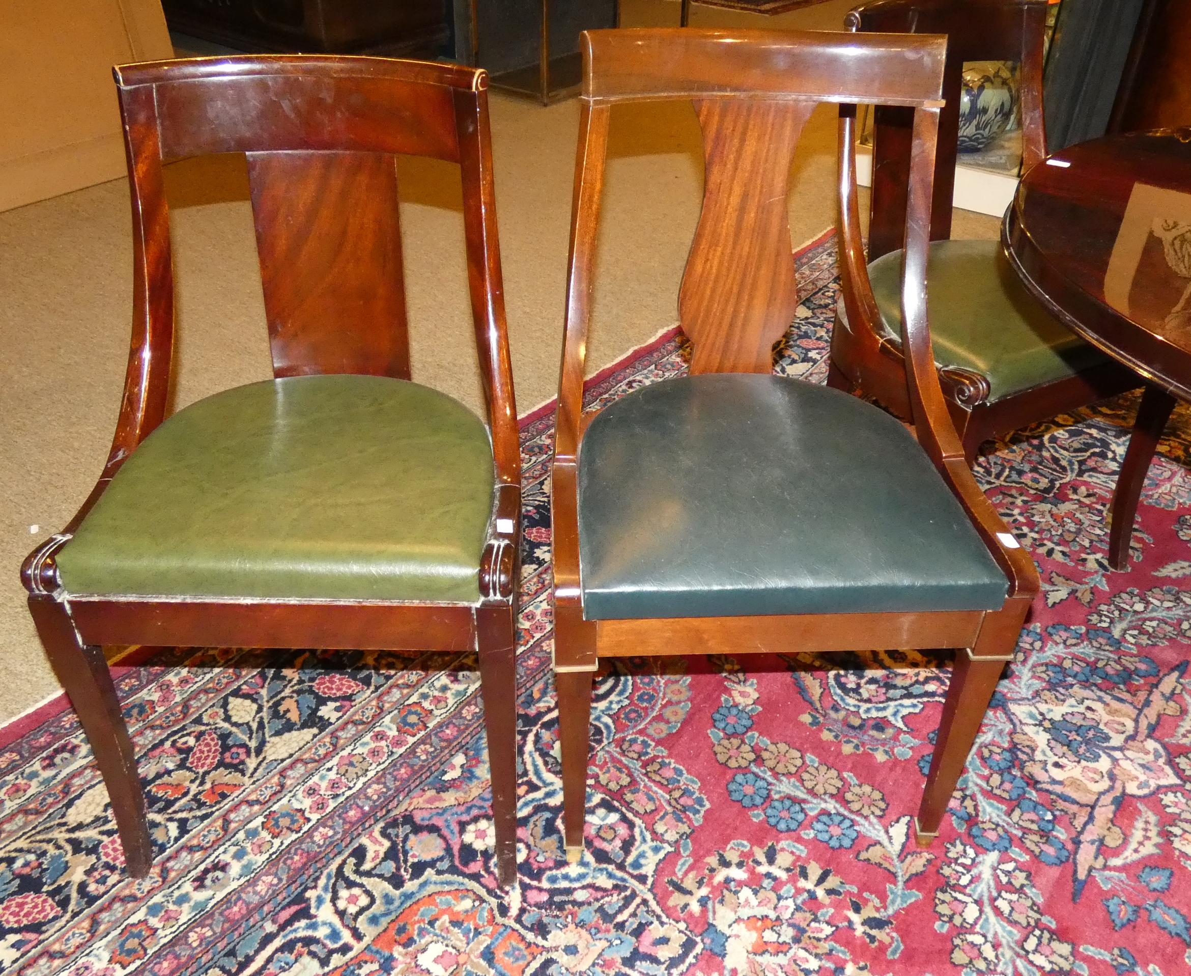 Meuble: Table et chaises (2 différents modèles) de style EMPIRE en acajou et pla