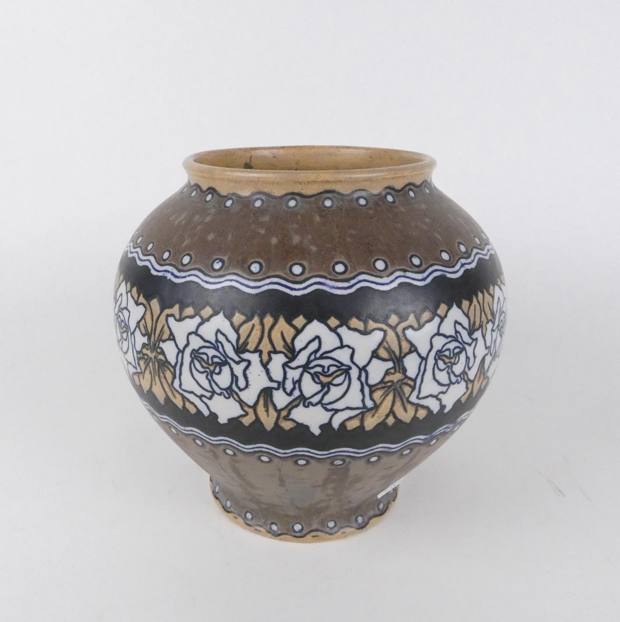 Céramique: Vase en grès KERAMIS Boch 1920 ADF atelier *CATTEAU C.* (Charles) (1880, 1966) D622 F915 décor dit -passe partout- H:25,6cm