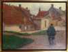 Tableau HST -Vue de maison avec personnage- 1905 signé *VAN DER LOO M.* (Marten) (1880, 1920) 57x78cm cadre doré