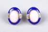 Bijou: Paire de boucles d'oreilles en or jaune 18K serties d'opales rose, entourées de lapis-lazuli et de diamants pour env. 0,45cts P: 15,5gr