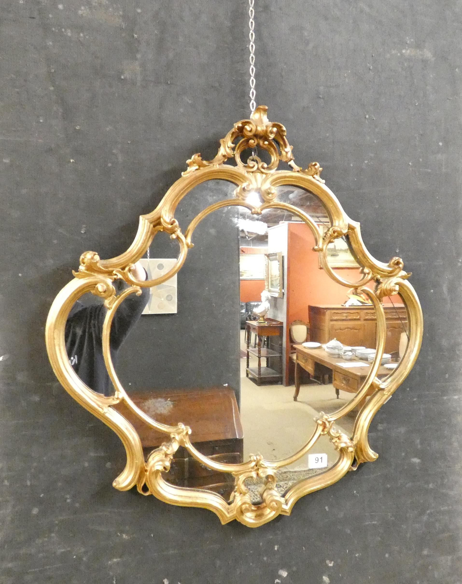 Meuble: Miroir à parcloses (piqué) en bois sculpté de style Louis XV 72x77cm
