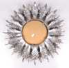Meuble : Miroir dit soleil rond en métal argenté patiné dans un entourage de feuilles