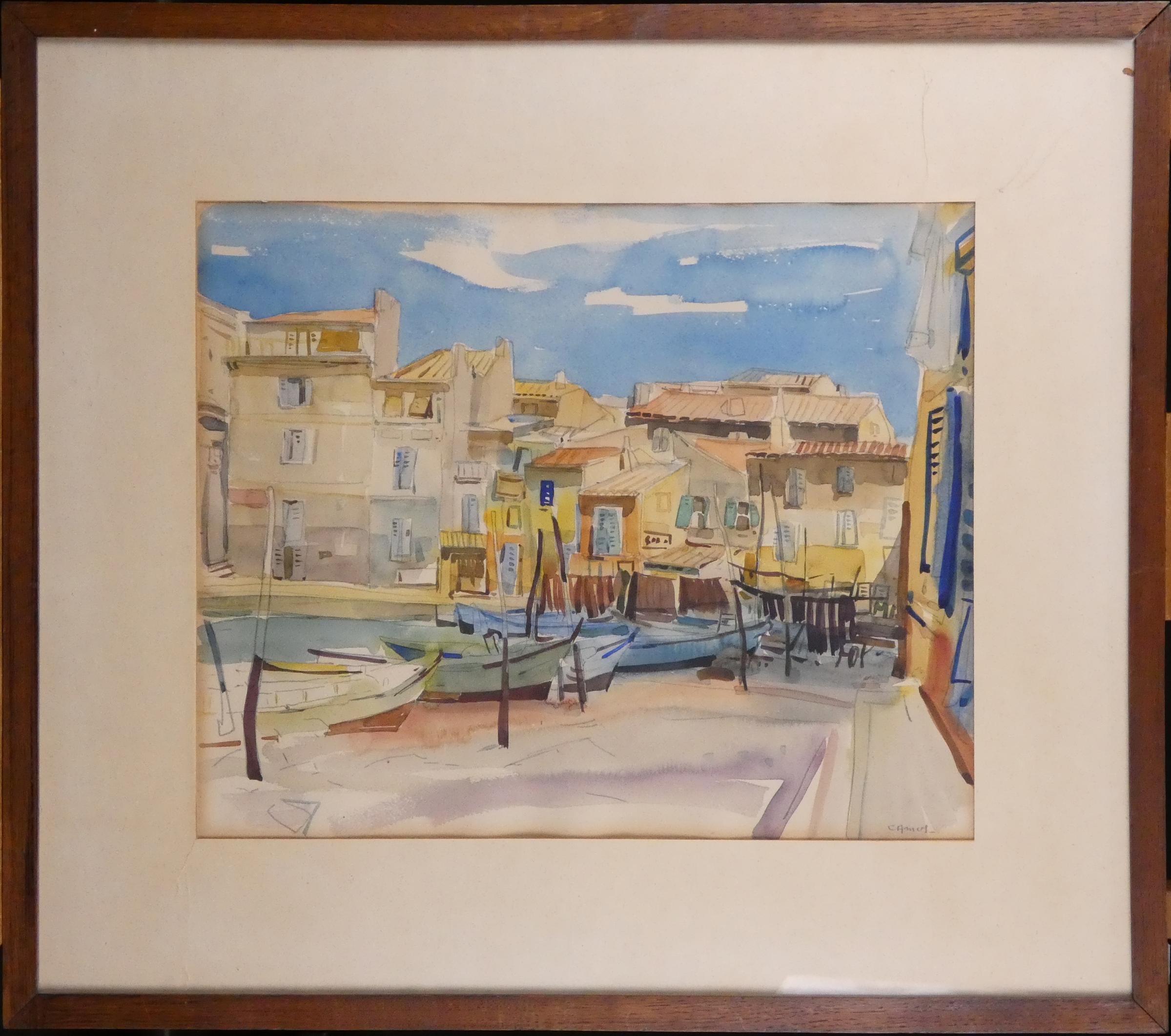Tableau: aquarelle -Martigue (France)- signé *CAMUS G.* (Gustave) (1914, 1984) 36,5x45,5cm cadre bois sous verre