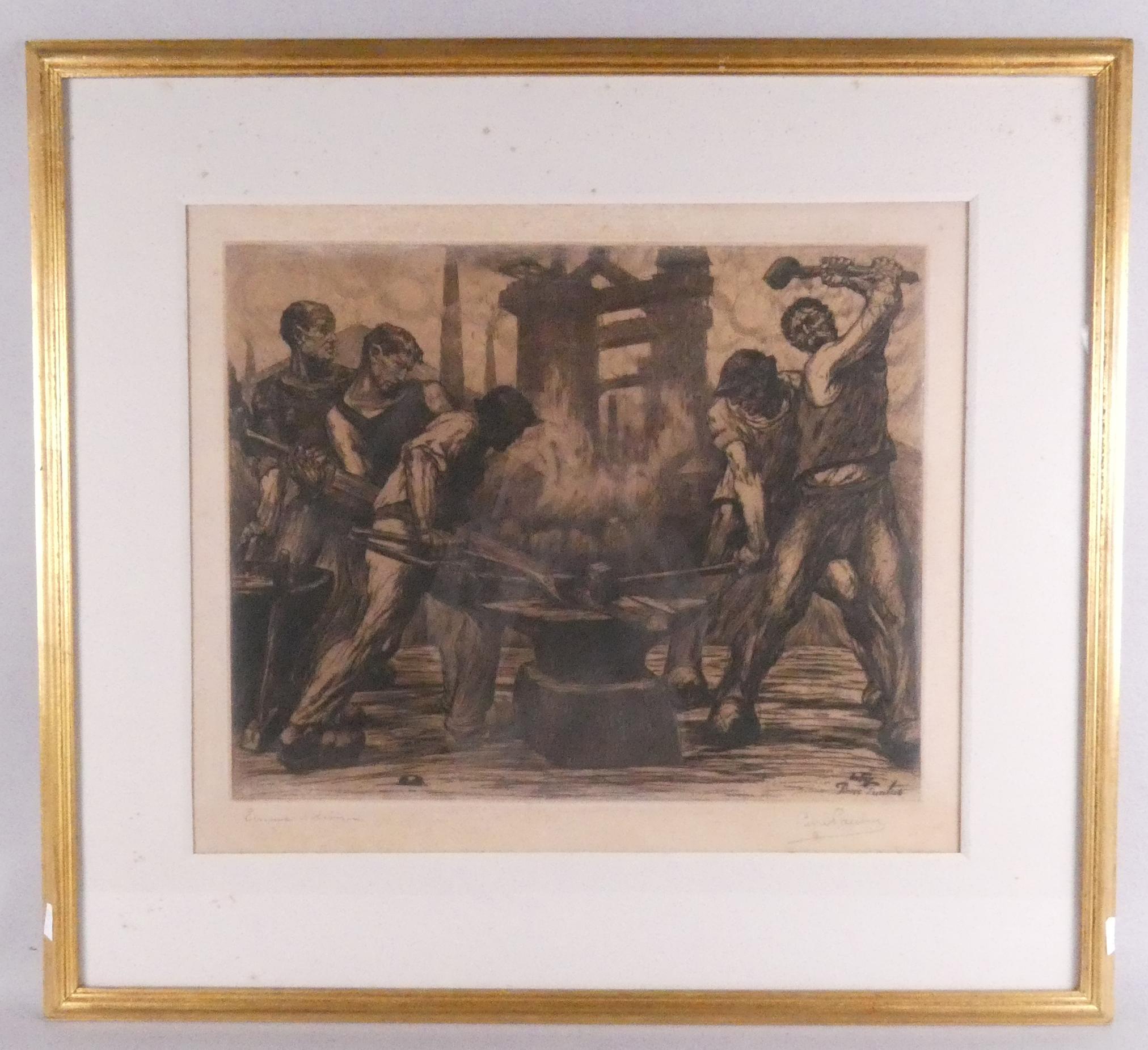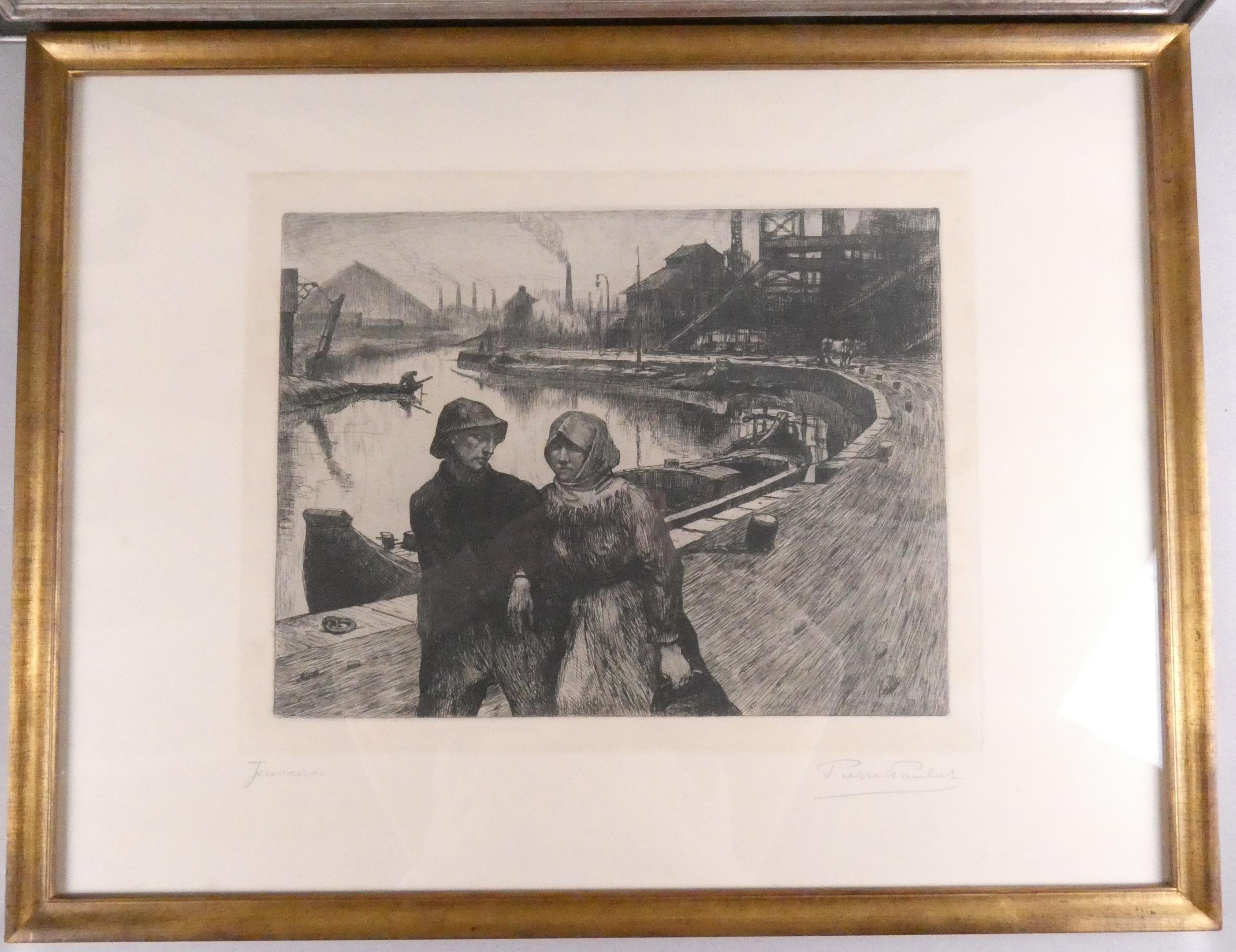 Estampe: Eau forte -Jeunesse- 35x45cm -Maternité- 40x50cm -Le fer- 40x50cm signés *PAULUS P.* (Pierre) (1881, 1959) cadre moderne sous verre