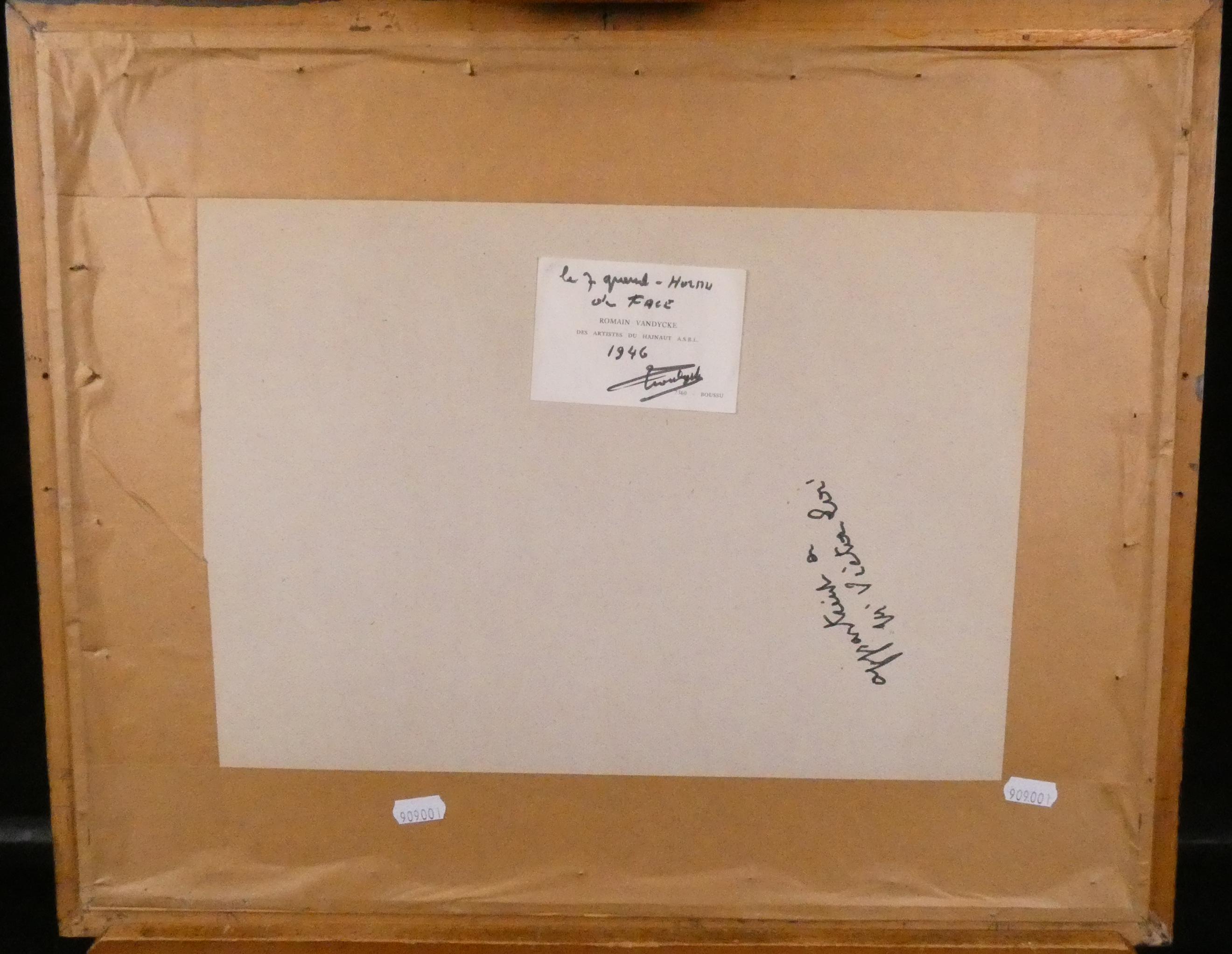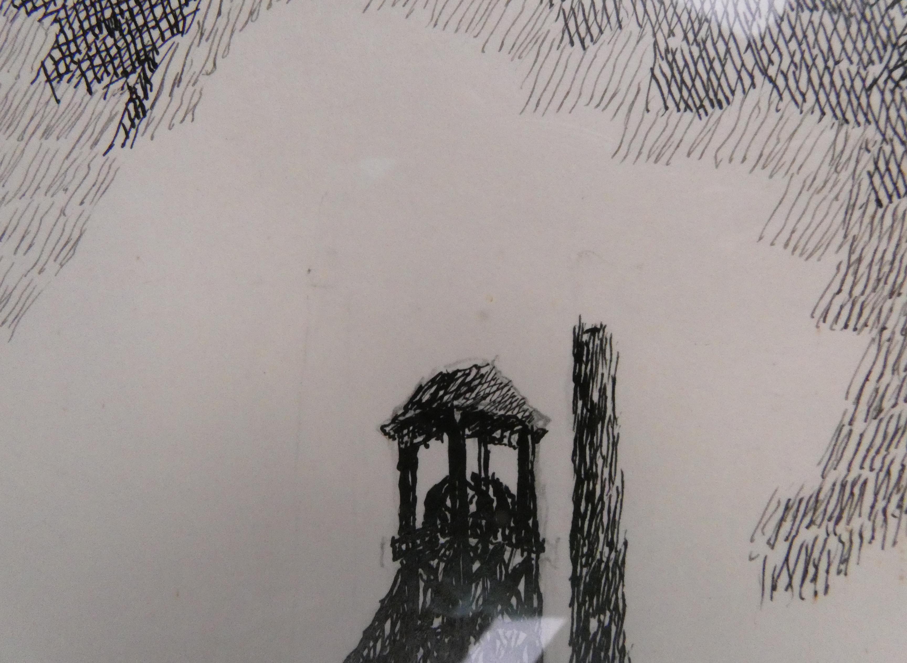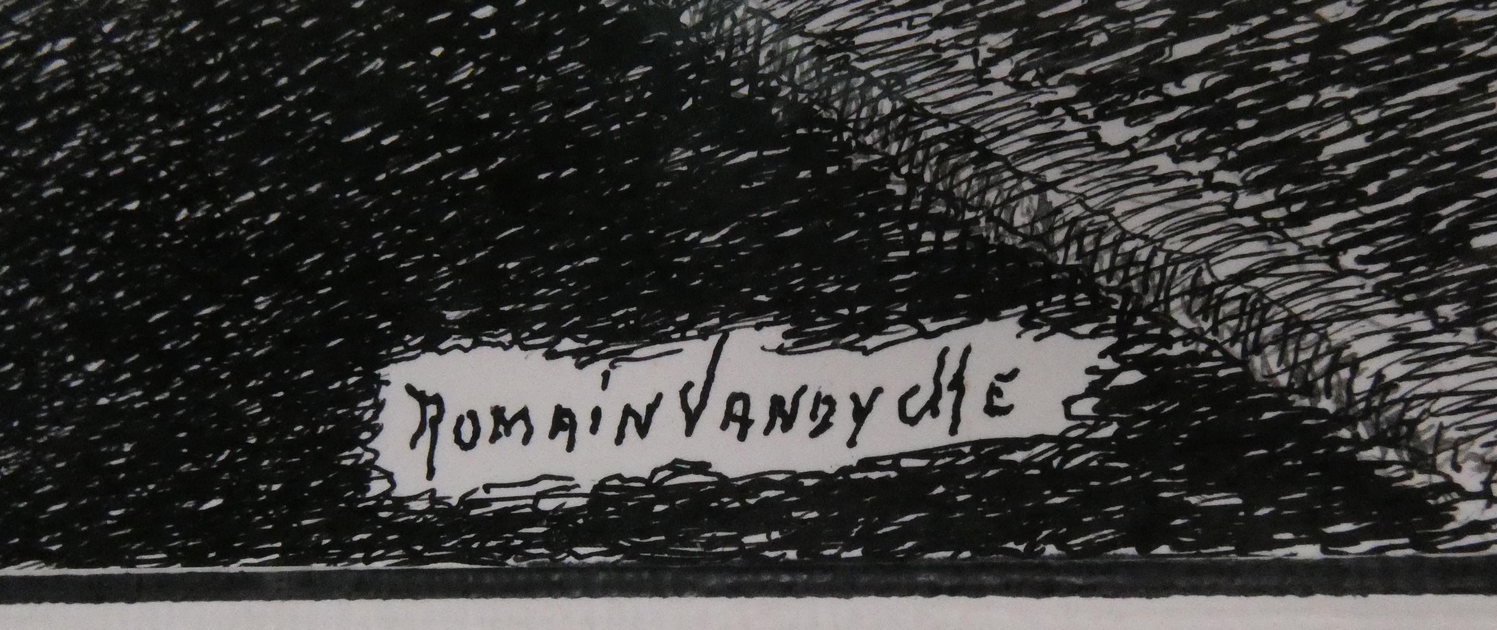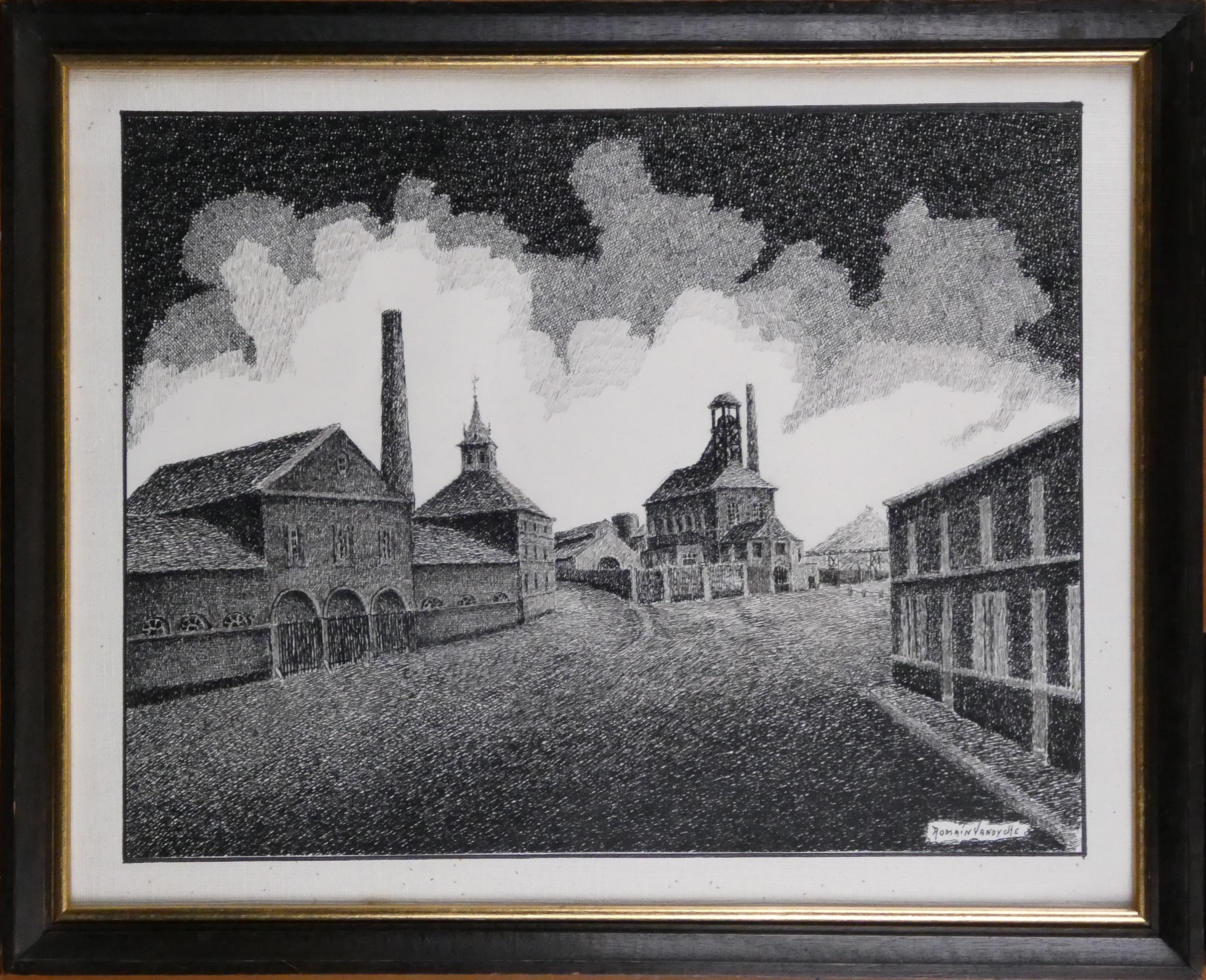 Tableau: plume/papier -Charbonnage- signé *VANDYCKE R.* (Romain) (1891, 1984) 35x45cm cadre bois sous verre