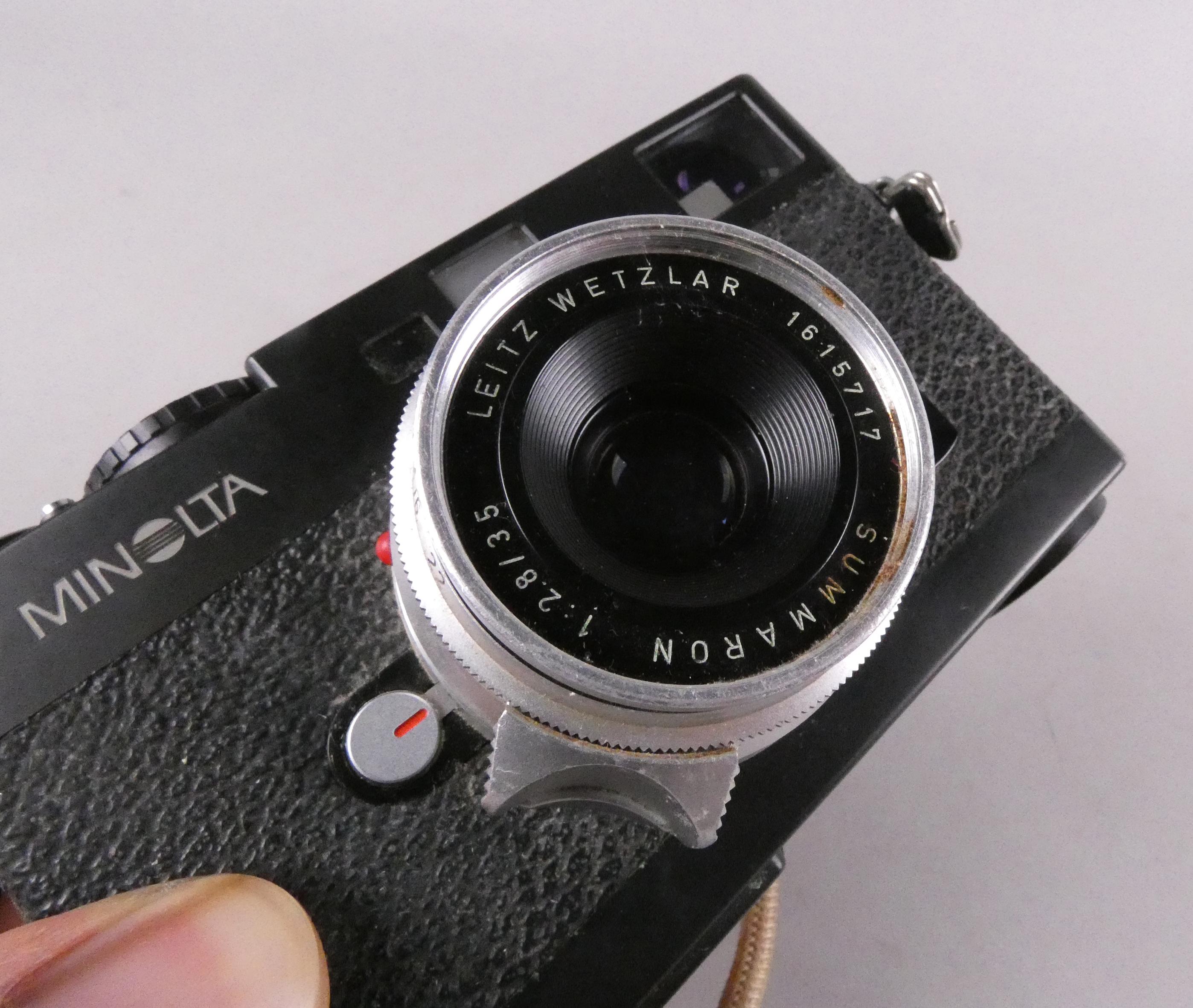 Objet : Appareil photo Boîtier Minolta CLE (non testé) avec objectif Leitz Summaron 1 : 2.8/35