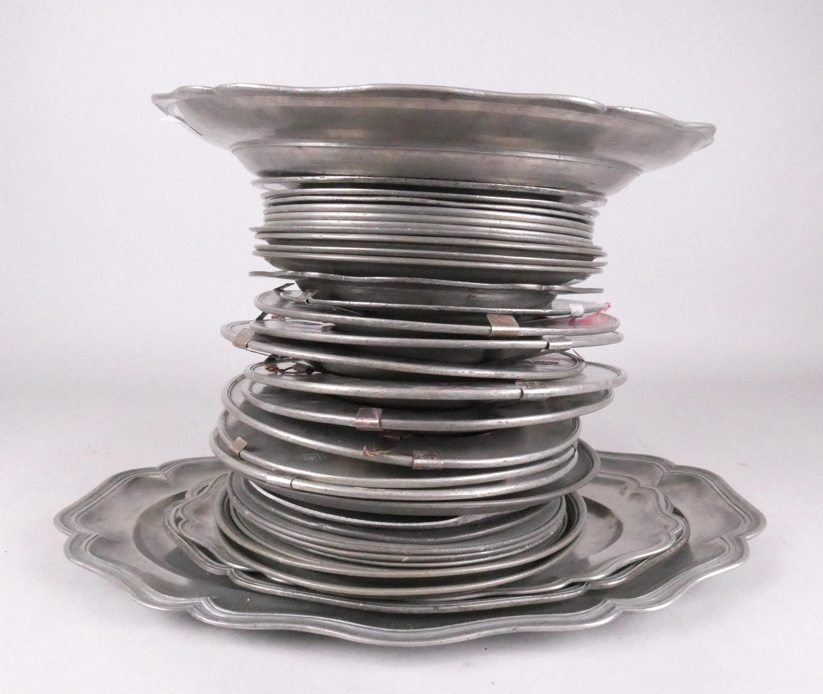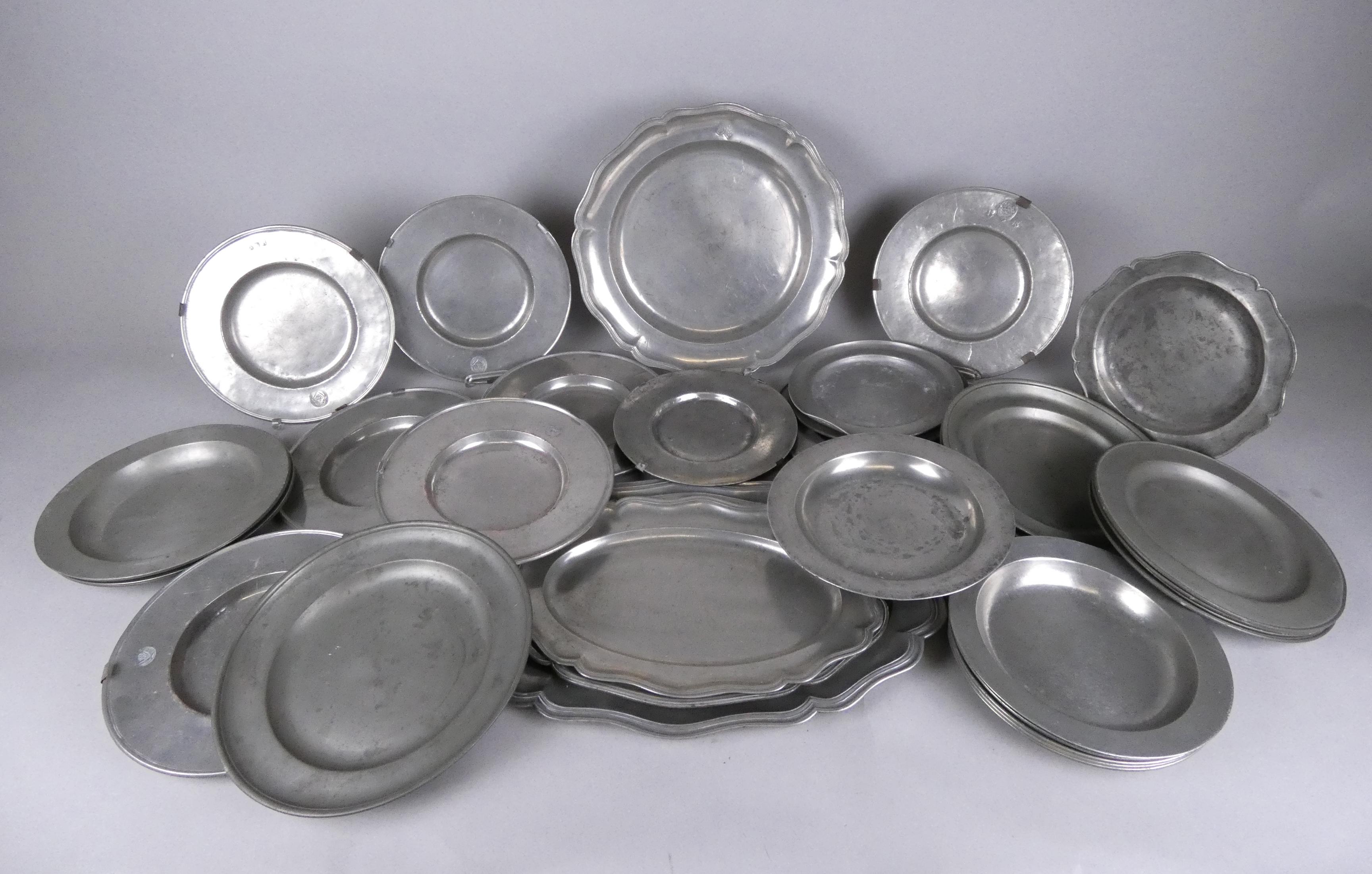 Objet: Assiettes anciennes et plats en étain (33) divers poinçons de maître Diam:+/- 25cm 17,18 et 19eS Pbrut+/-:25,380kg