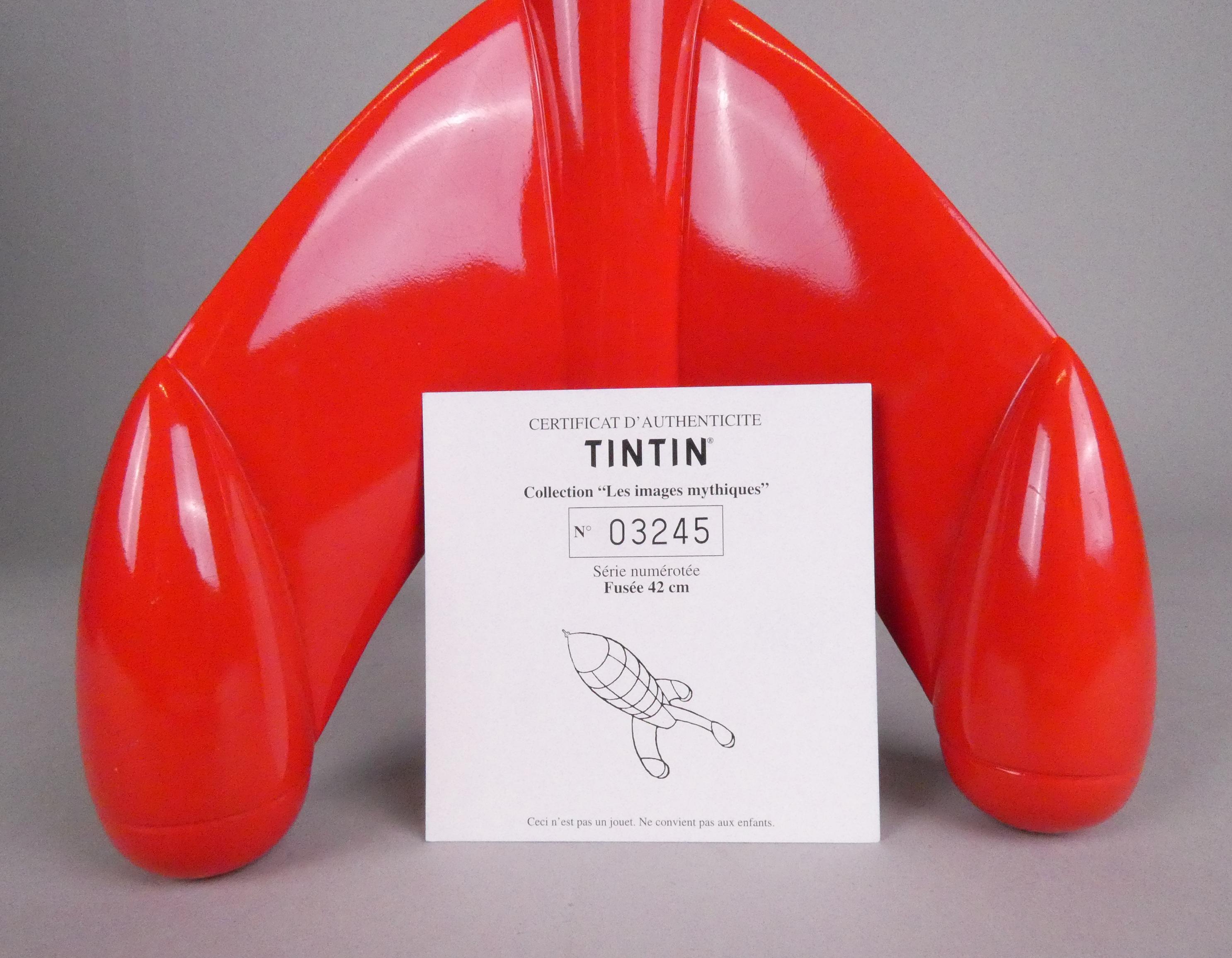 BD: Hergé Collection Moulinsart Les images mythiques -Fusée Tintin 42cm- (pt craquelures de surface) avec certificat N:03245 (en boite)