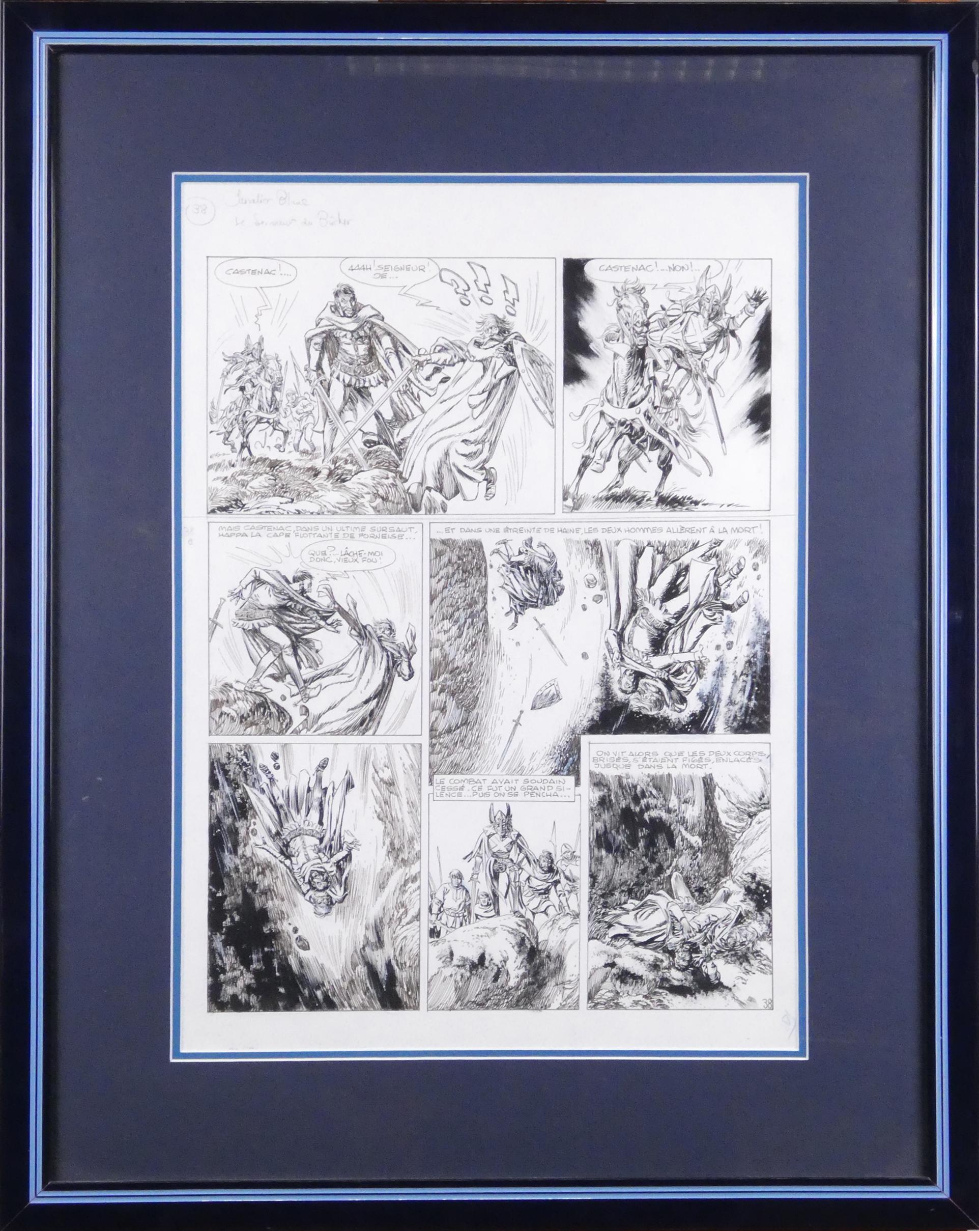 BD : Encre rehauts de gouache planche N°38 Le chevalier Blanc - Le serment du Bûcher - FUNCKEN L et Liliane et Fred