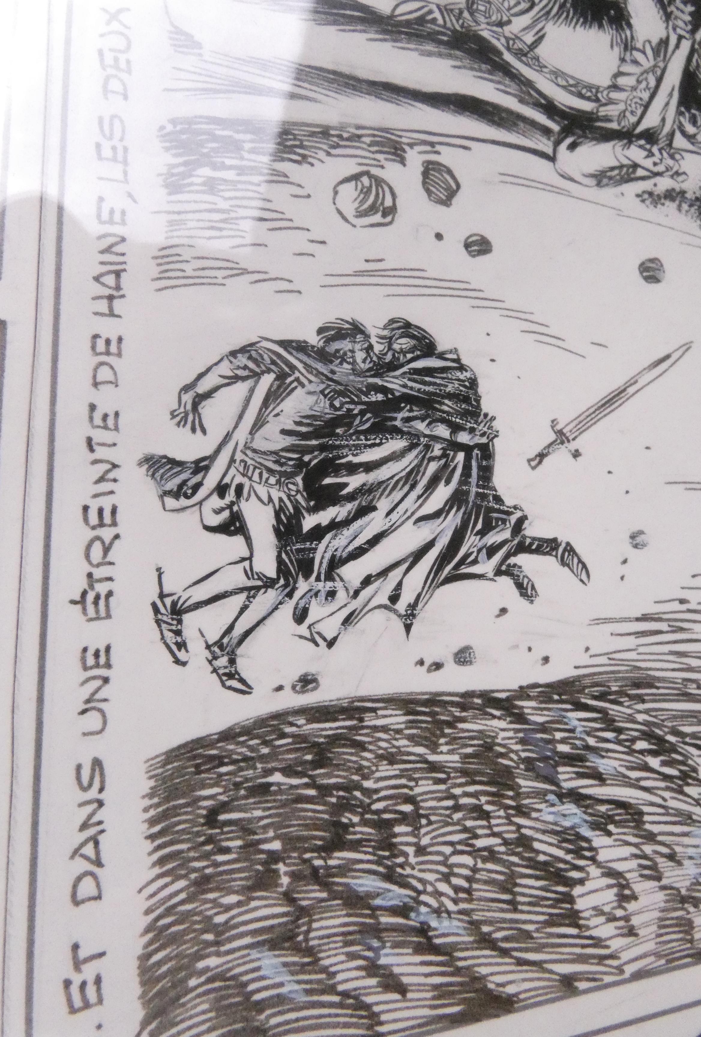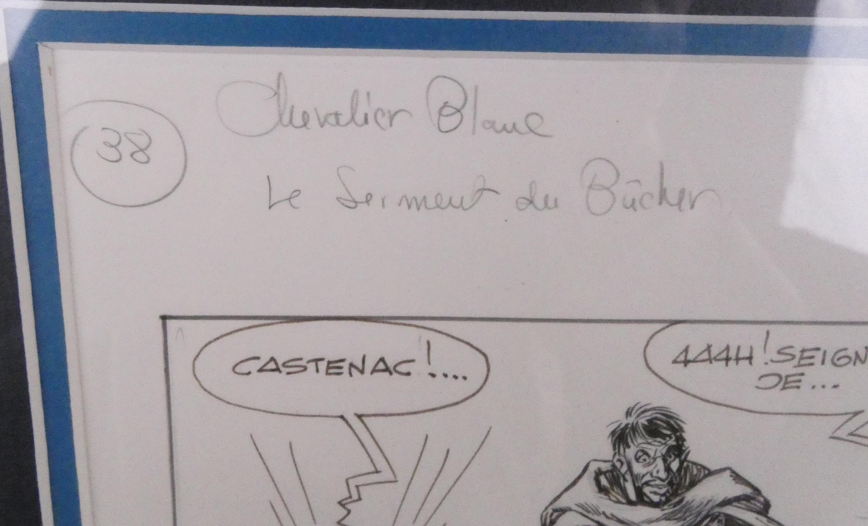 BD: Encre rehauts de gouache planche N°38 Le chevalier Blanc -Le serment du Bûcher- *FUNCKEN L et F* (Liliane et Fred) (XX, XXI) 39x29cm cadre s-v
