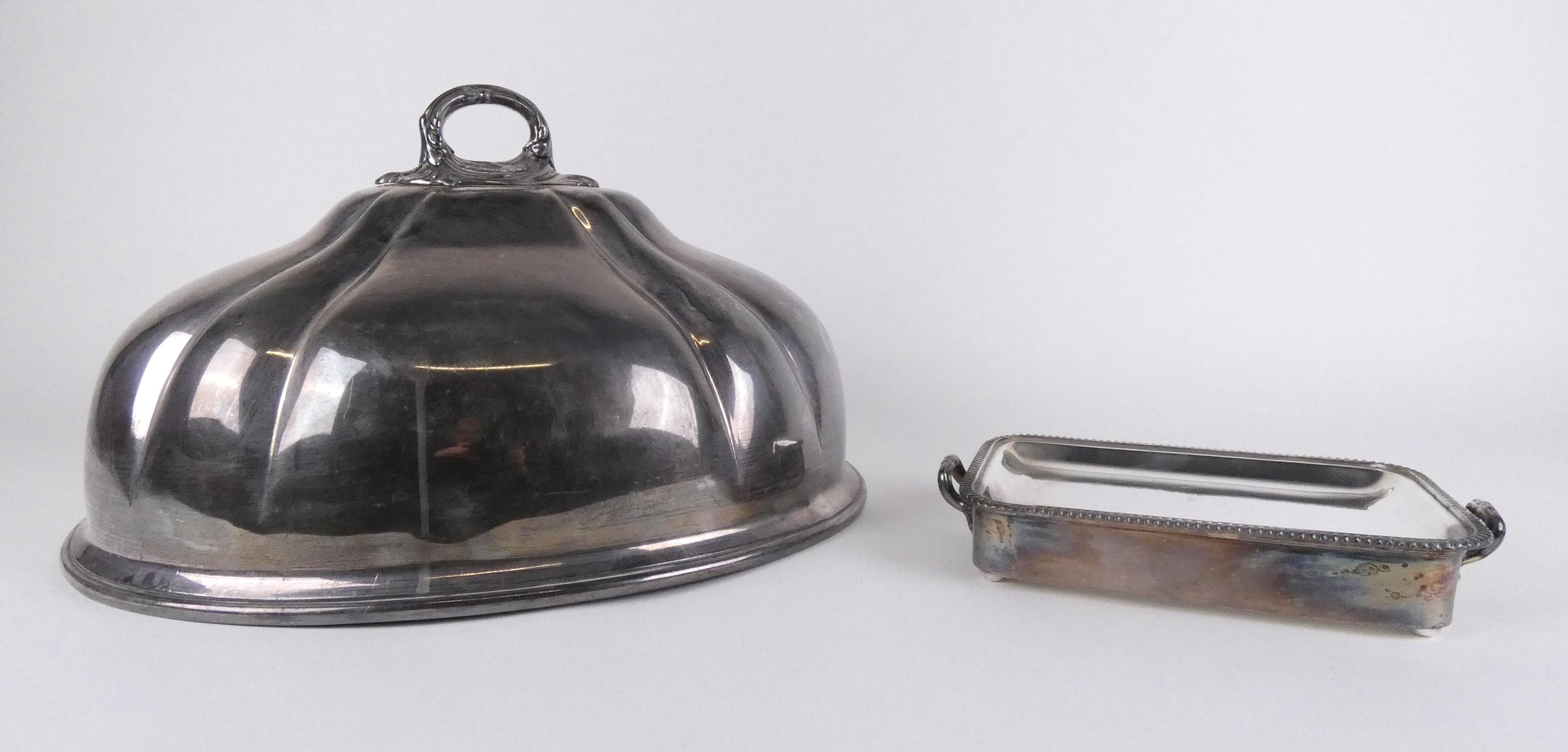 Argenterie: Grande cloche de service en métal argenté DIXON & SON SHEFFIELD (coups) H:29x50x41cm + chauffe-plat 28x17cm (2pcs)