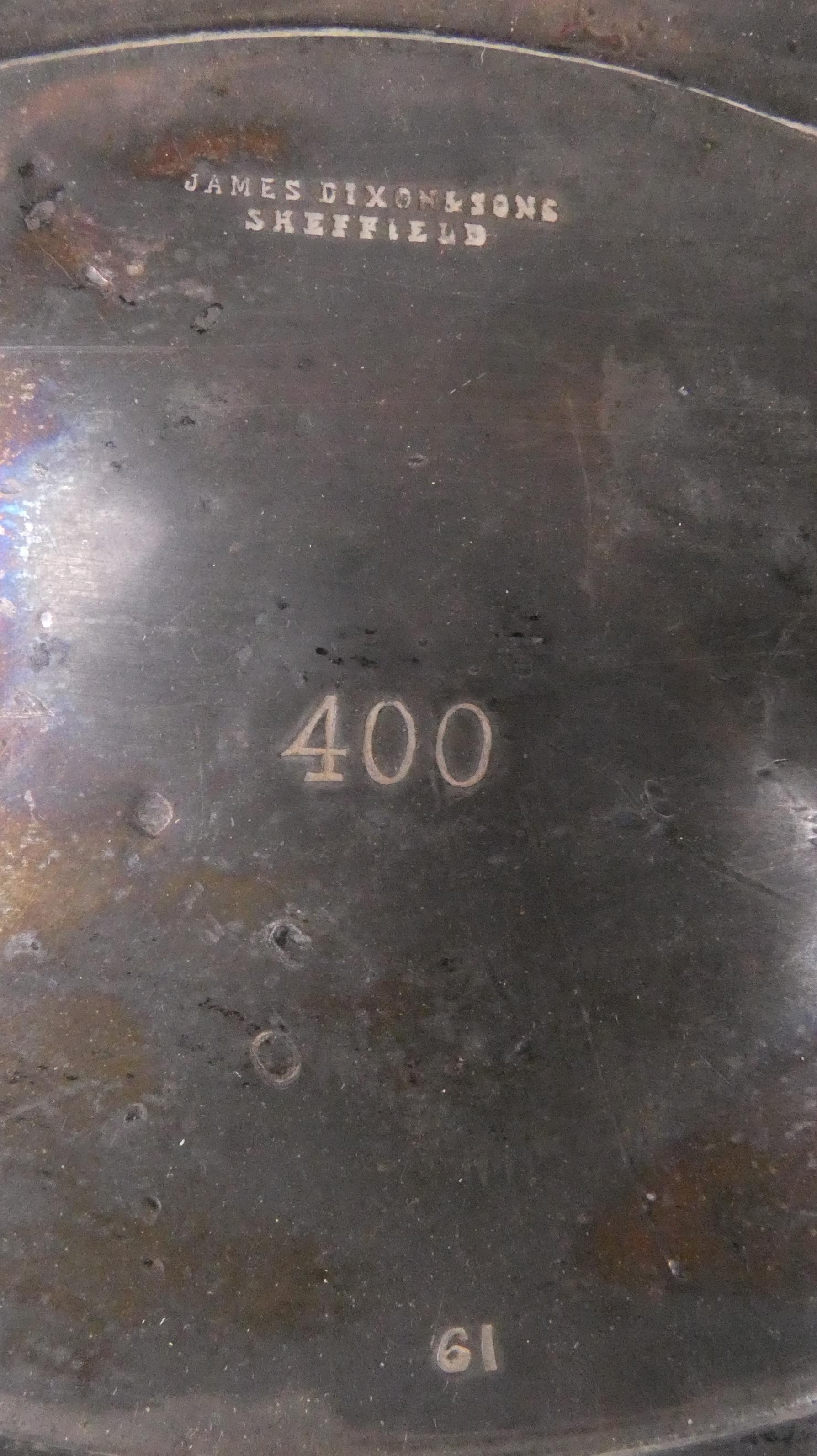 Argenterie : Grande cloche de service en métal argenté DIXON & SON SHEFFIELD (coups) + chauffe-plat